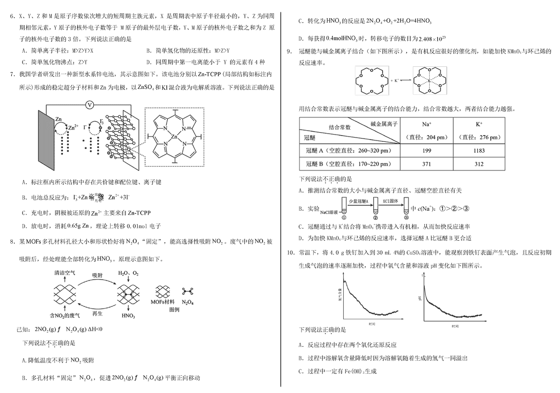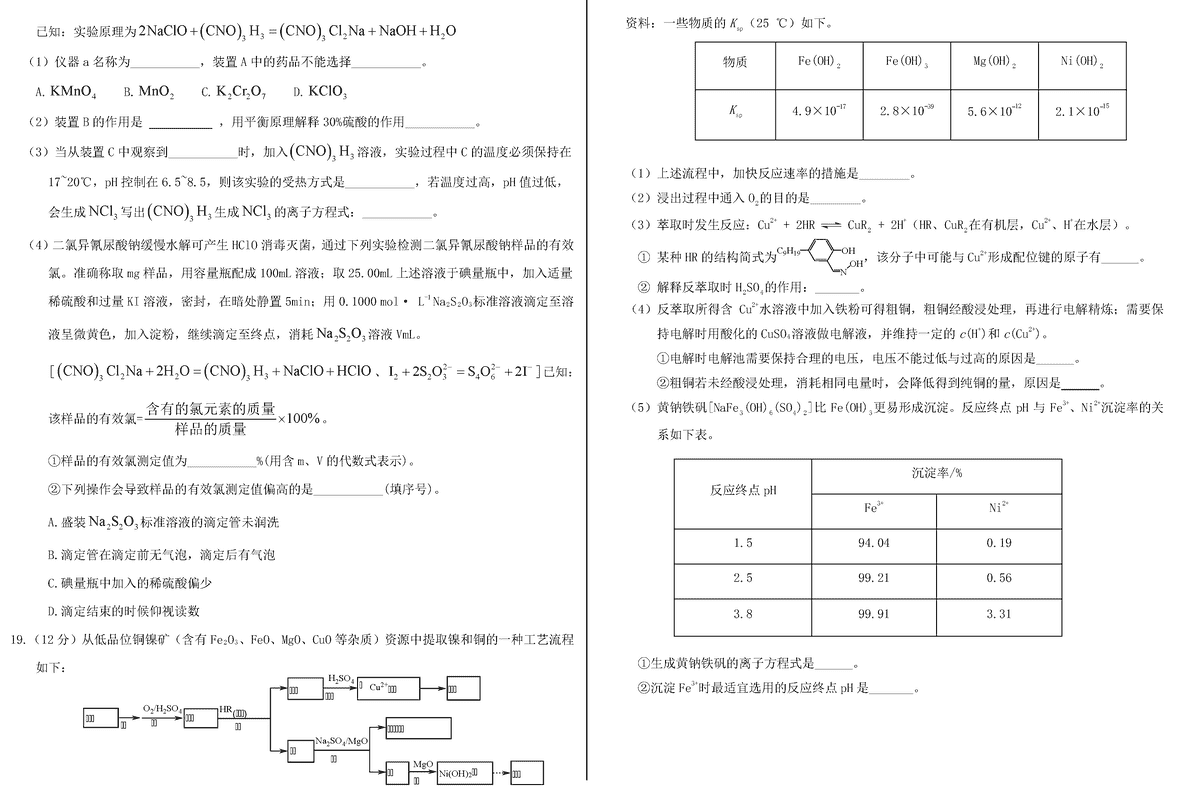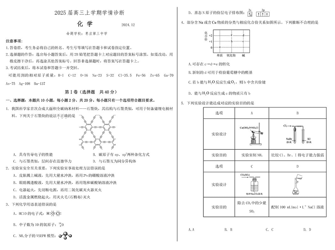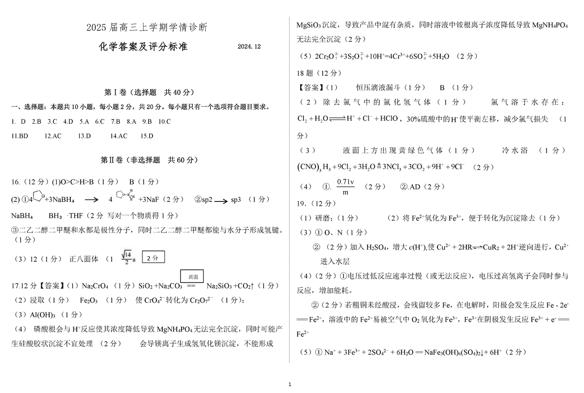 山东中学联盟百校大联考2025届高三上12月学情诊断化学试题及答案