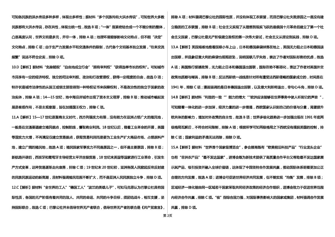 历史试题及答案解析