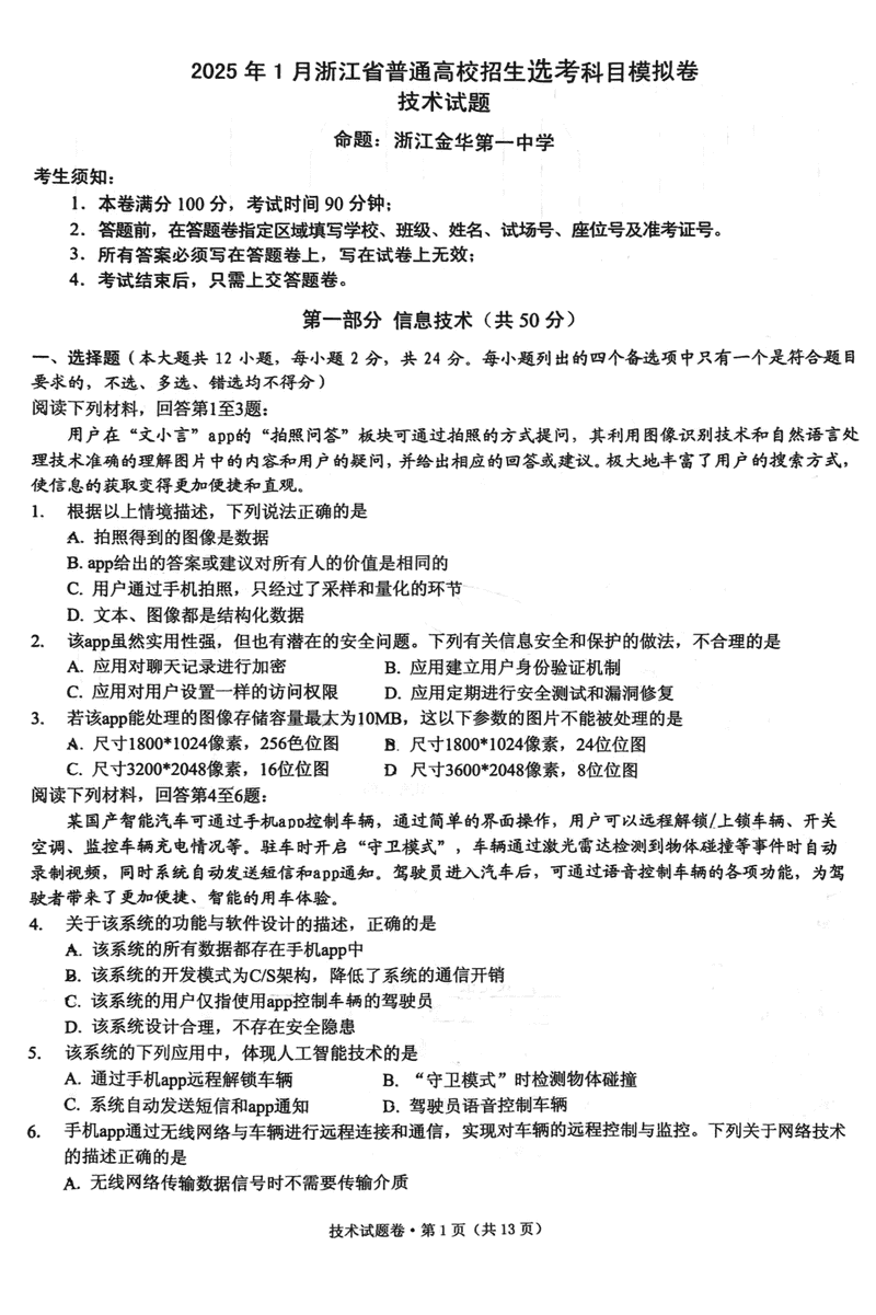 2025届浙江省五校联盟高三12月首考模拟技术试题及答案