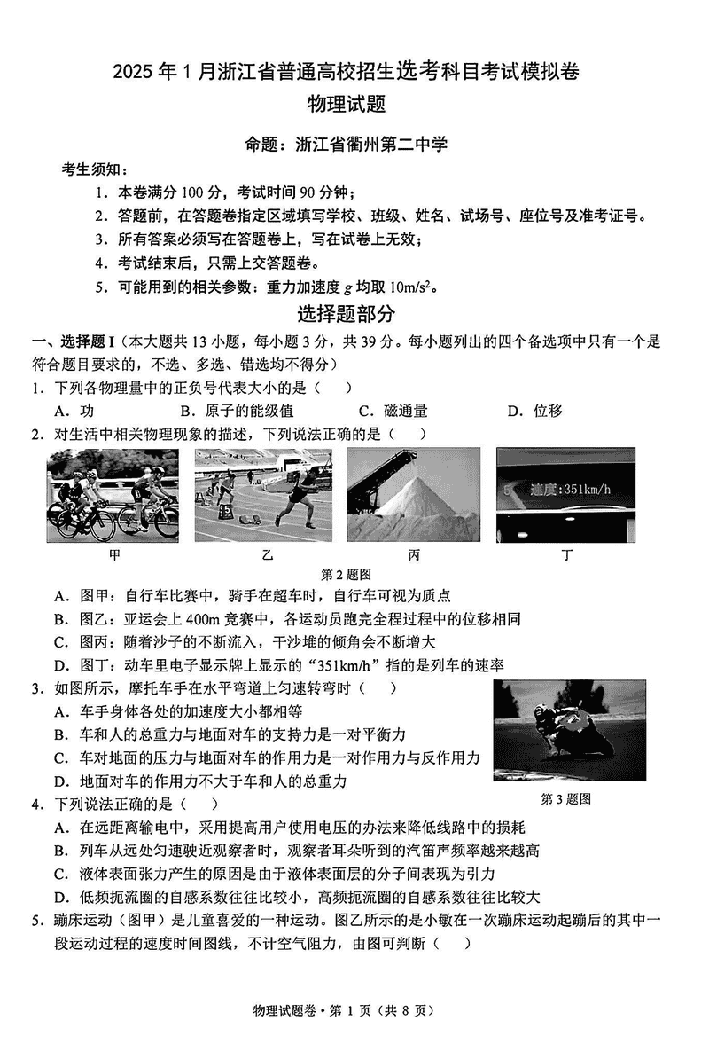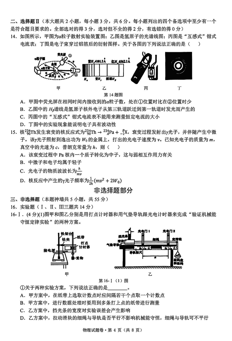 2025届浙江省五校联盟高三12月首考模拟物理考试已于近日开考,为方便考生考后及时查看考试情况,查漏补缺、弥补不足,本文整理了试题答案解析相关信息!