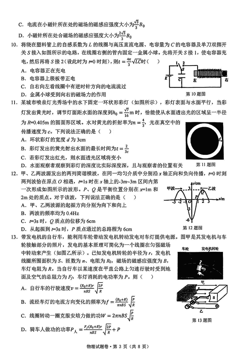 2025届浙江省五校联盟高三12月首考模拟物理试题及答案