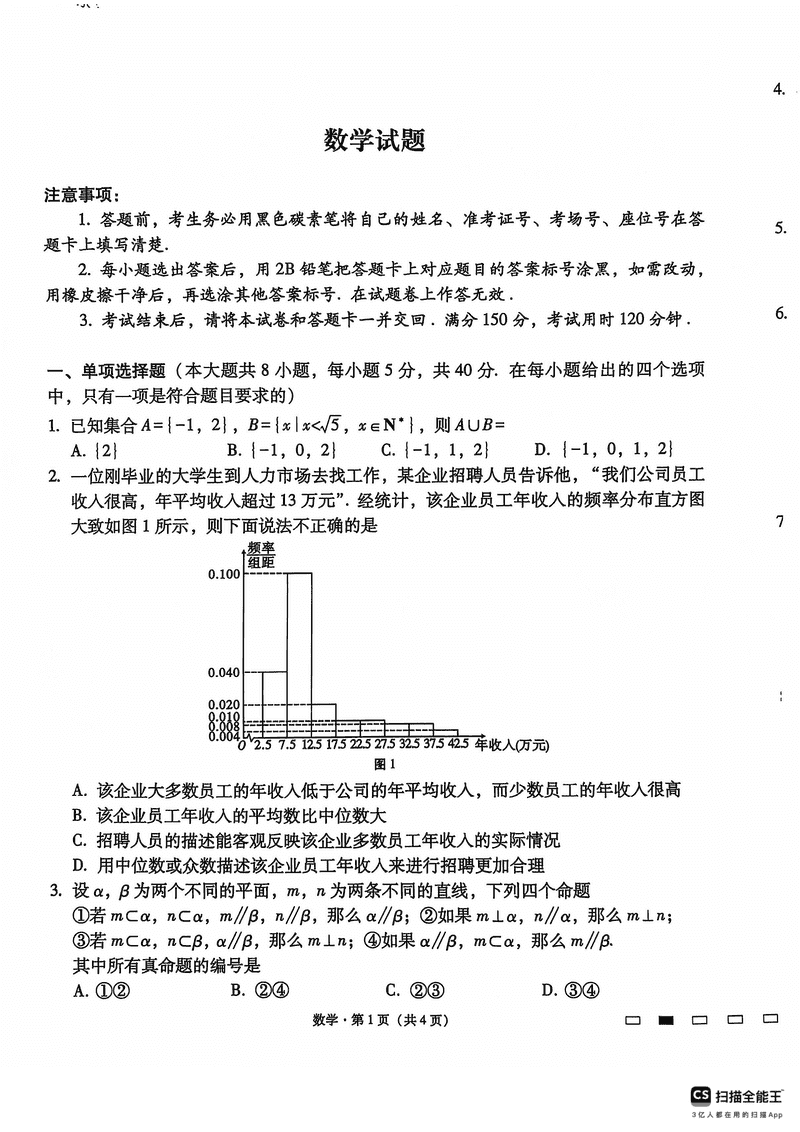 数学试题及答案解析