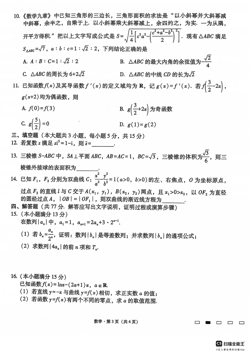 贵州六校联盟2025届高三12月实用性联考(三)数学试题及答案