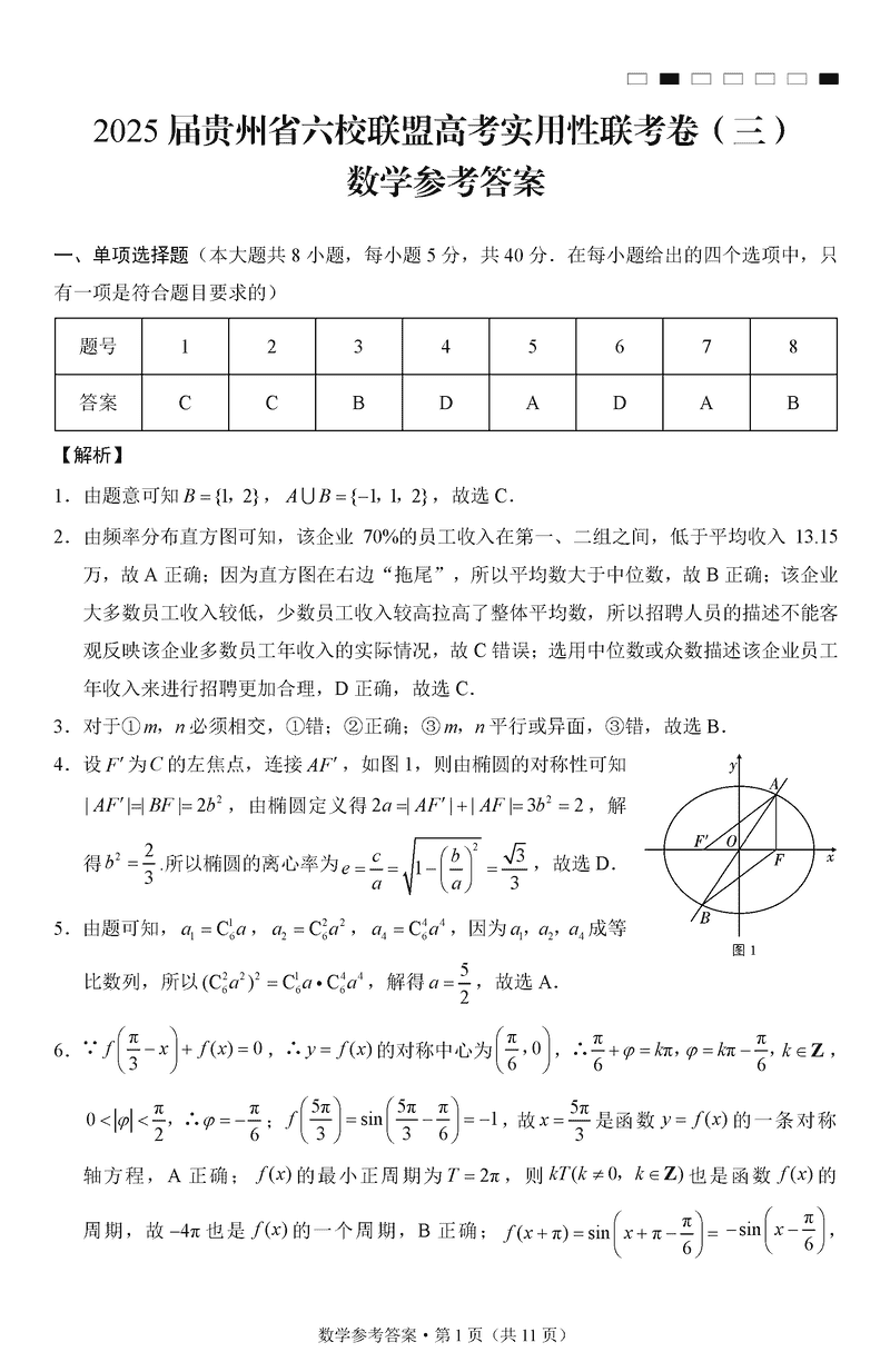 贵州六校联盟2025届高三12月实用性联考(三)数学考试已于近日开考,为方便考生考后及时查看考试情况,查漏补缺、弥补不足,本文整理了试题答案解析相关信息!