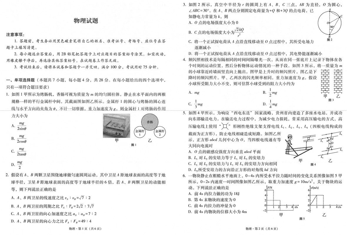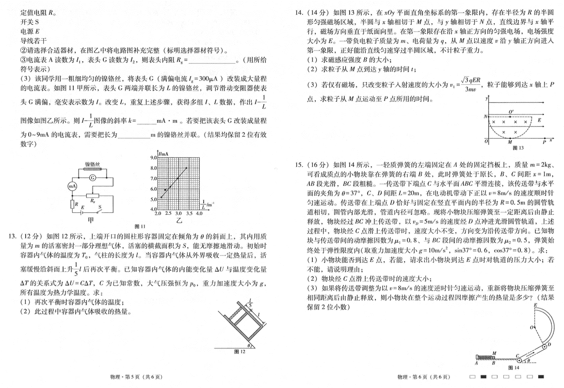 贵州六校联盟2025届高三12月实用性联考(三)物理试题及答案