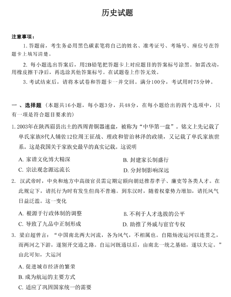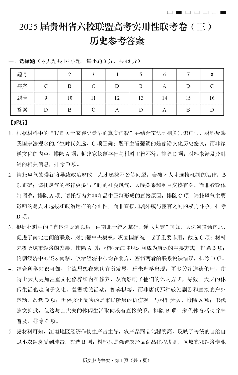 贵州六校联盟2025届高三12月实用性联考(三)历史考试已于近日开考,为方便考生考后及时查看考试情况,查漏补缺、弥补不足,本文整理了试题答案解析相关信息!
