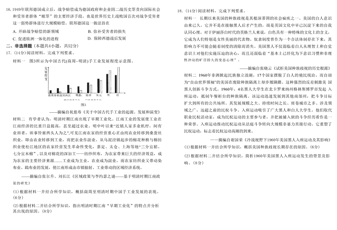 贵州六校联盟2025届高三12月实用性联考(三)历史试题及答案