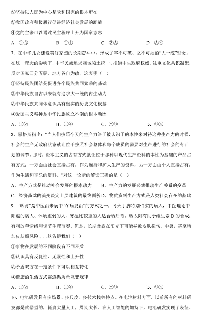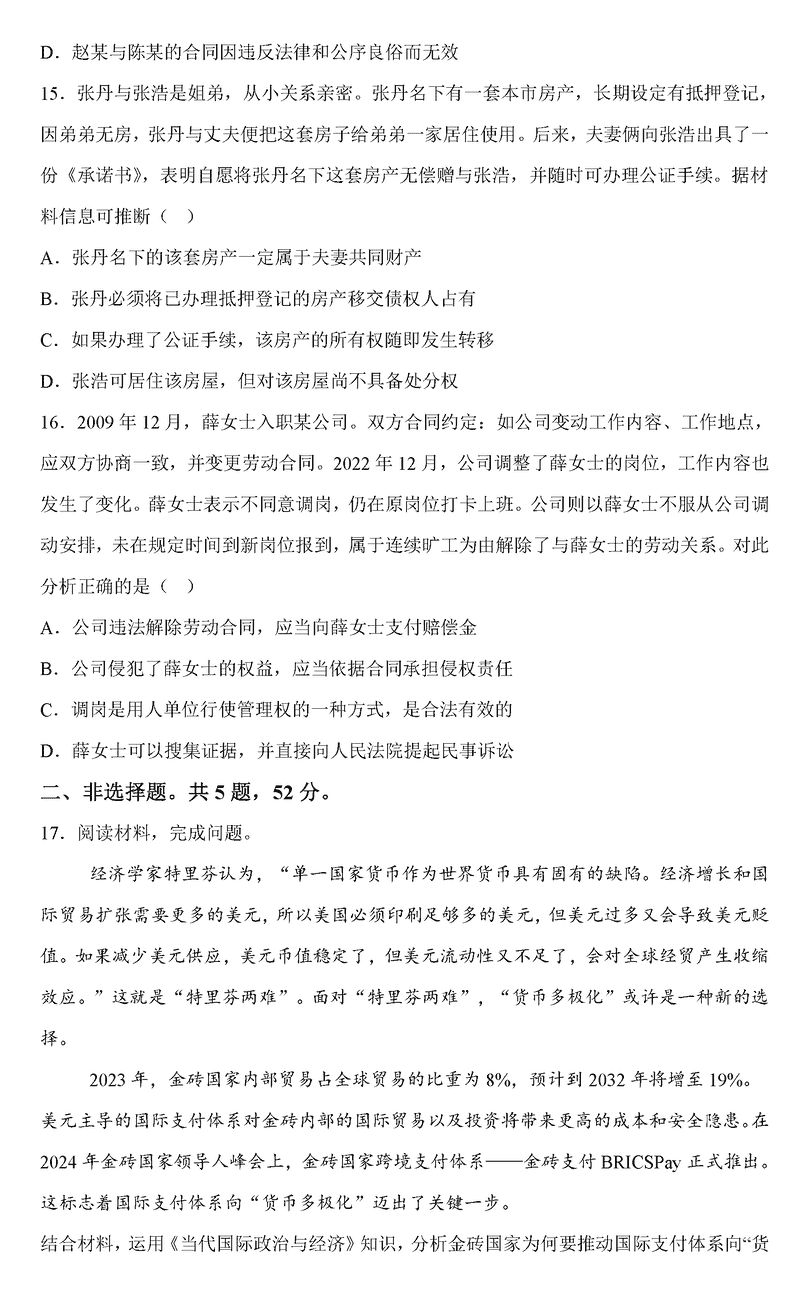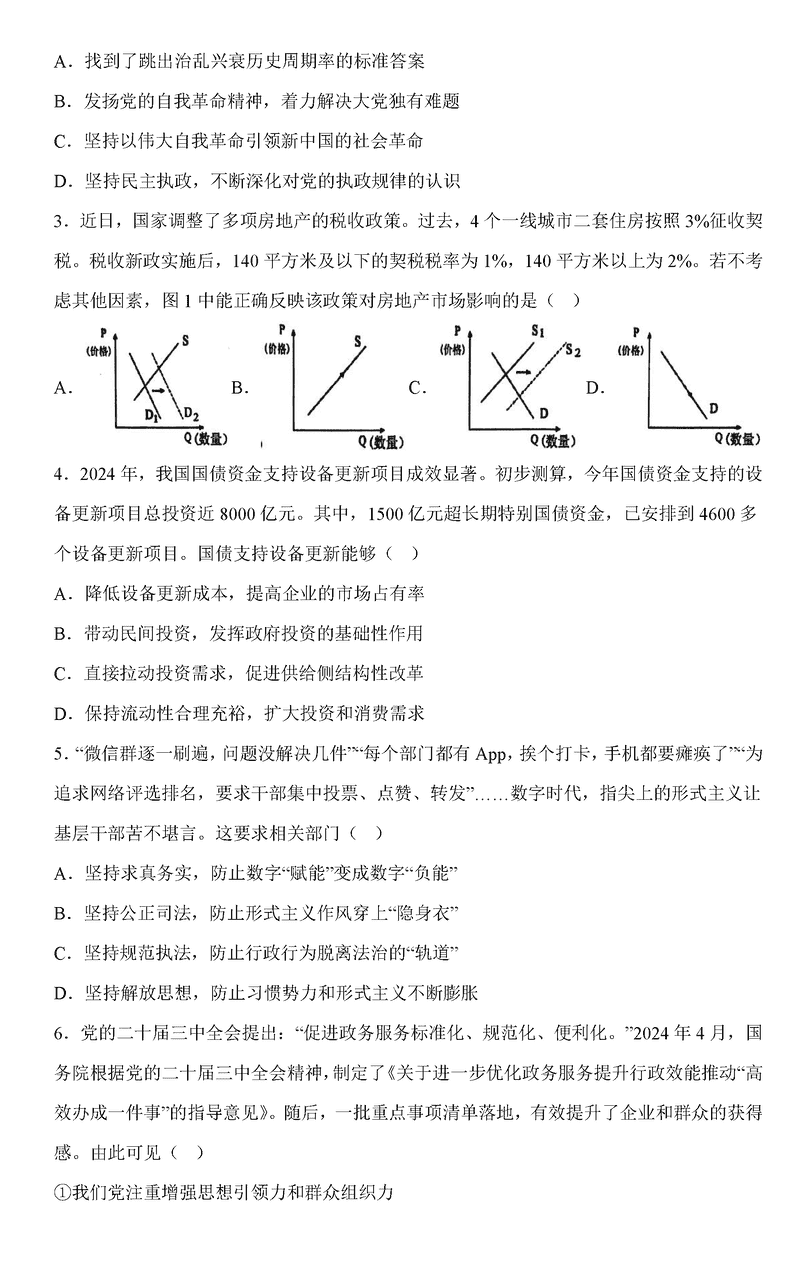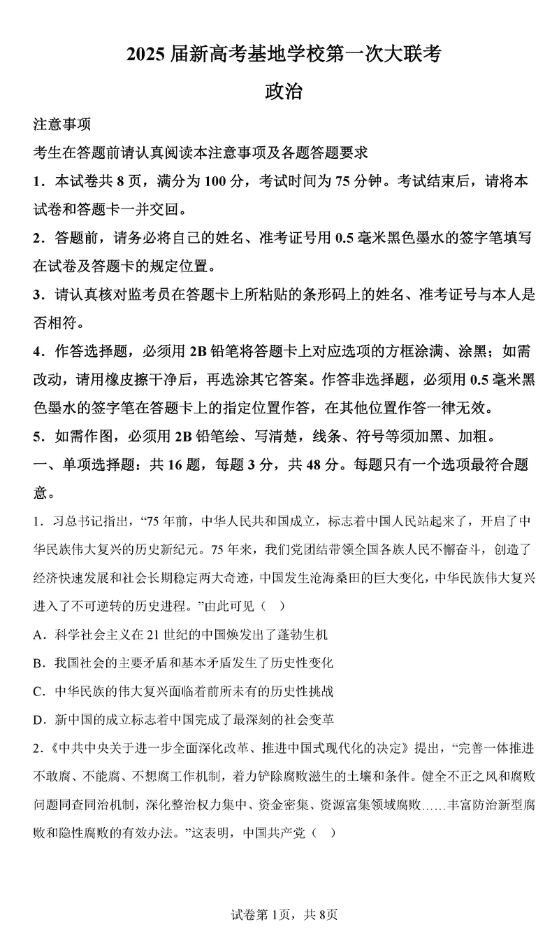 江苏新高考基地学校2025届高三12月第一次大联考政治试题及答案