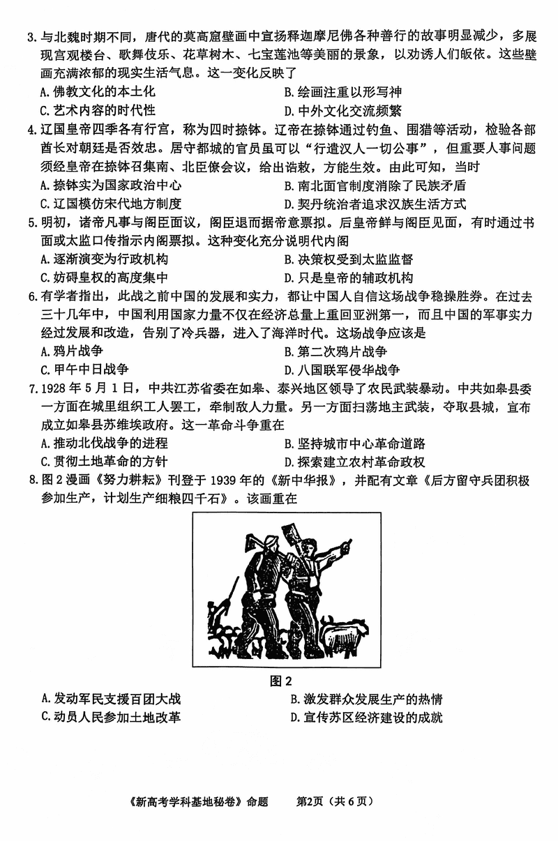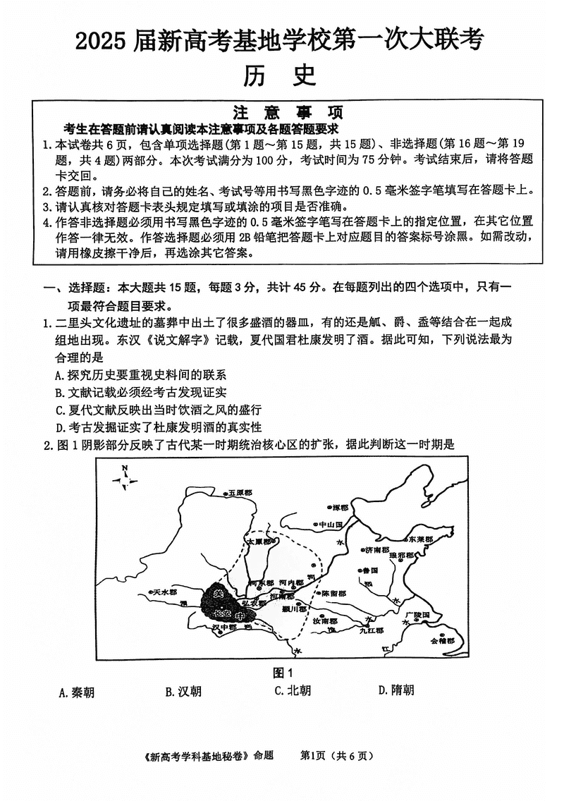 江苏新高考基地学校2025届高三12月第一次大联考历史试题及答案