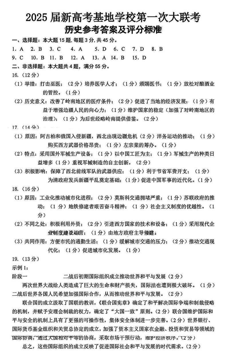 江苏新高考基地学校2025届高三12月第一次大联考历史考试已于近日开考,为方便考生考后及时查看考试情况,查漏补缺、弥补不足,本文整理了试题答案解析相关信息!