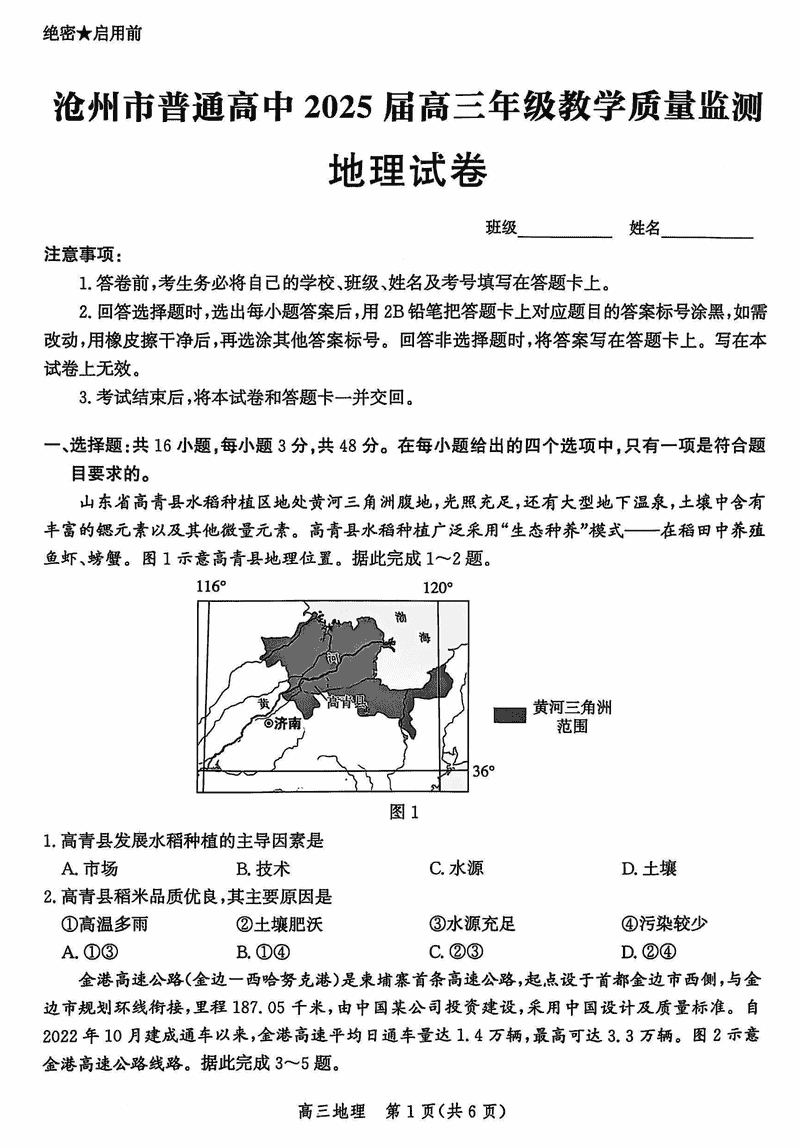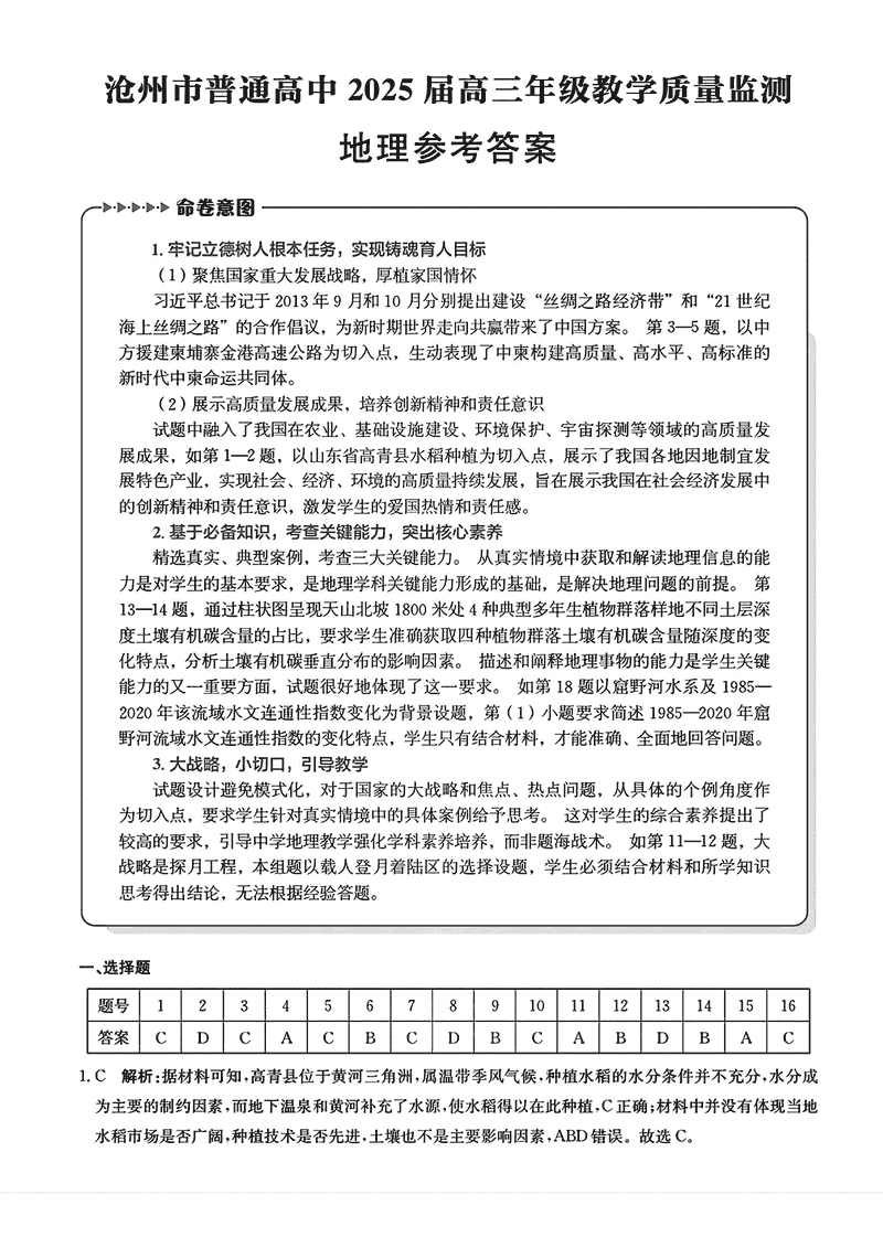 沧州市普通高中2025届高三12月教学质量监测地理考试已于近日开考,为方便考生考后及时查看考试情况,查漏补缺、弥补不足,本文整理了试题答案解析相关信息!