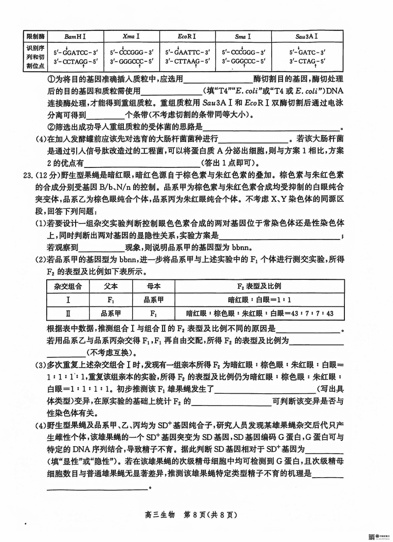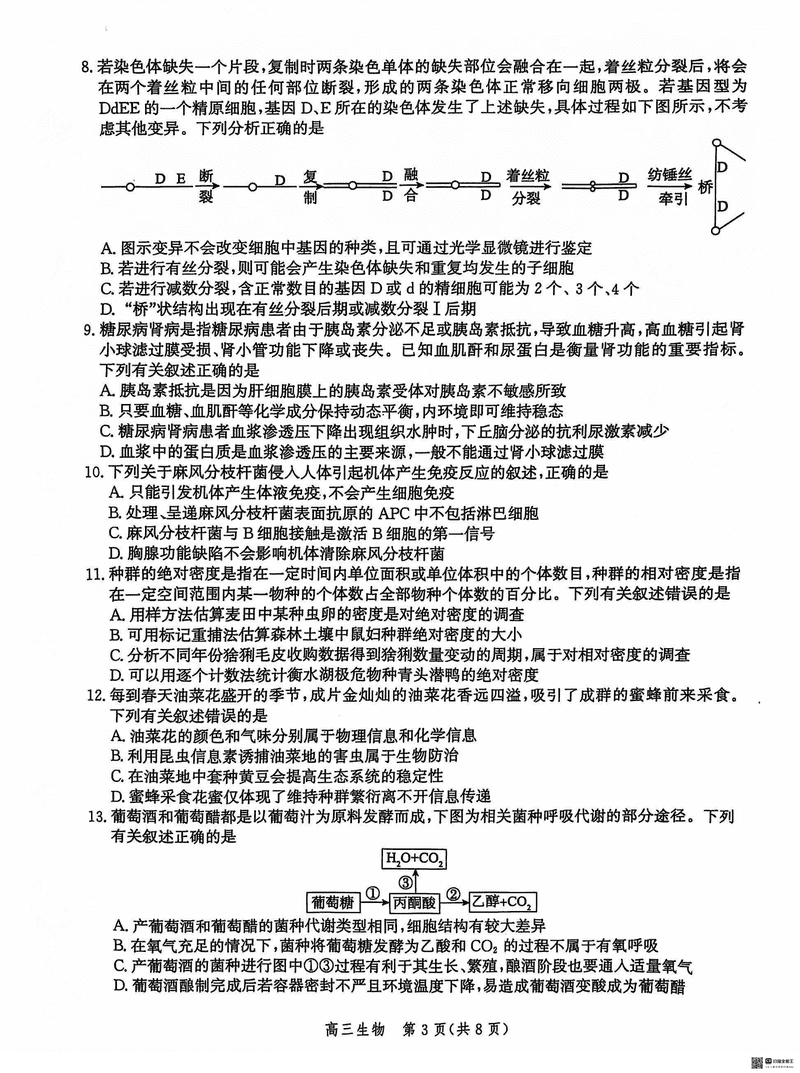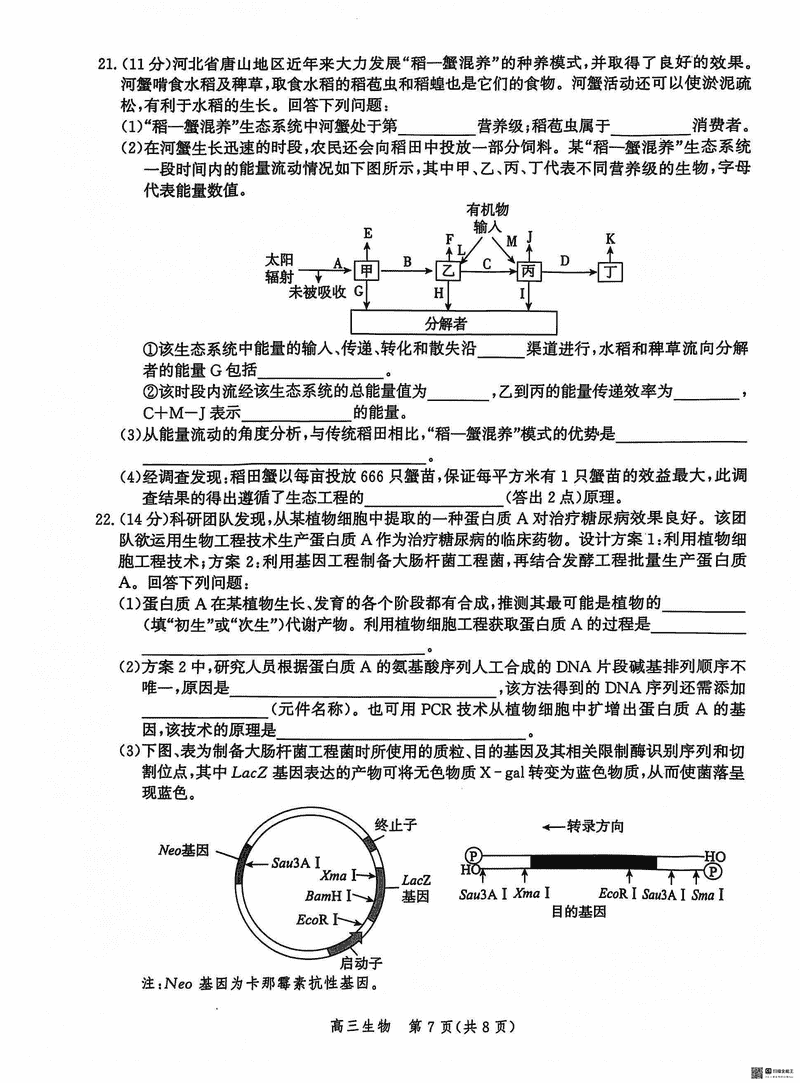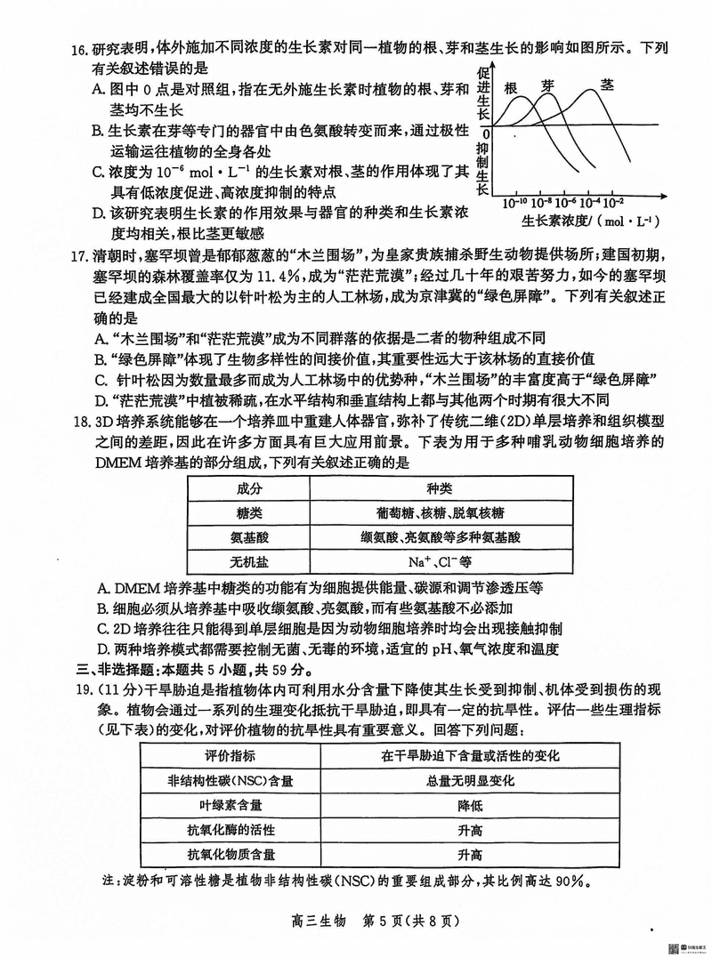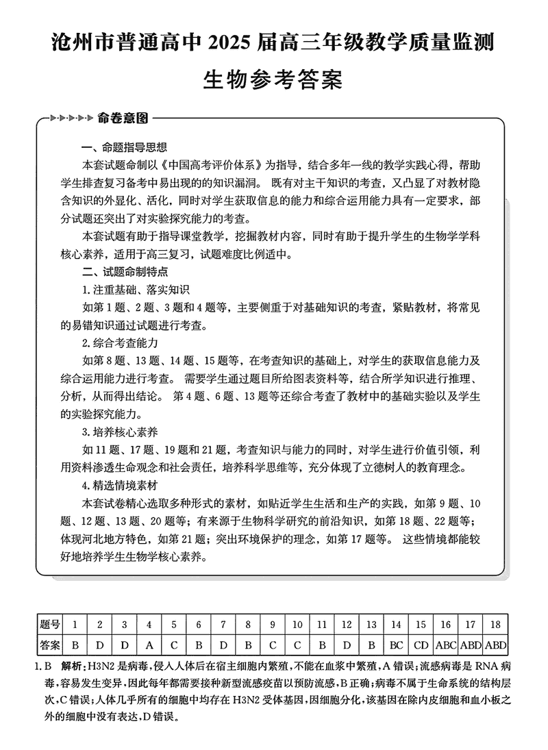 沧州市普通高中2025届高三12月教学质量监测生物考试已于近日开考,为方便考生考后及时查看考试情况,查漏补缺、弥补不足,本文整理了试题答案解析相关信息!