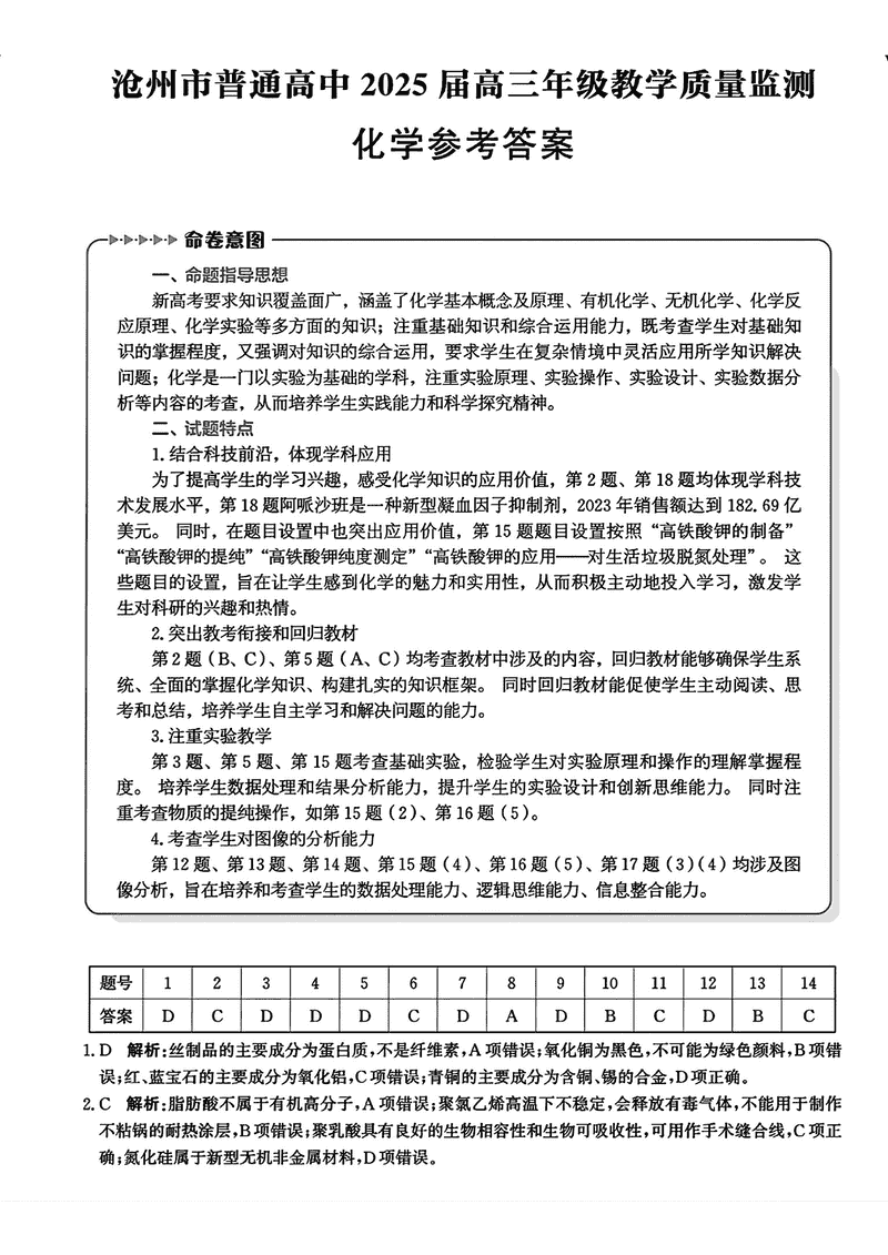 沧州市普通高中2025届高三12月教学质量监测化学考试已于近日开考,为方便考生考后及时查看考试情况,查漏补缺、弥补不足,本文整理了试题答案解析相关信息!