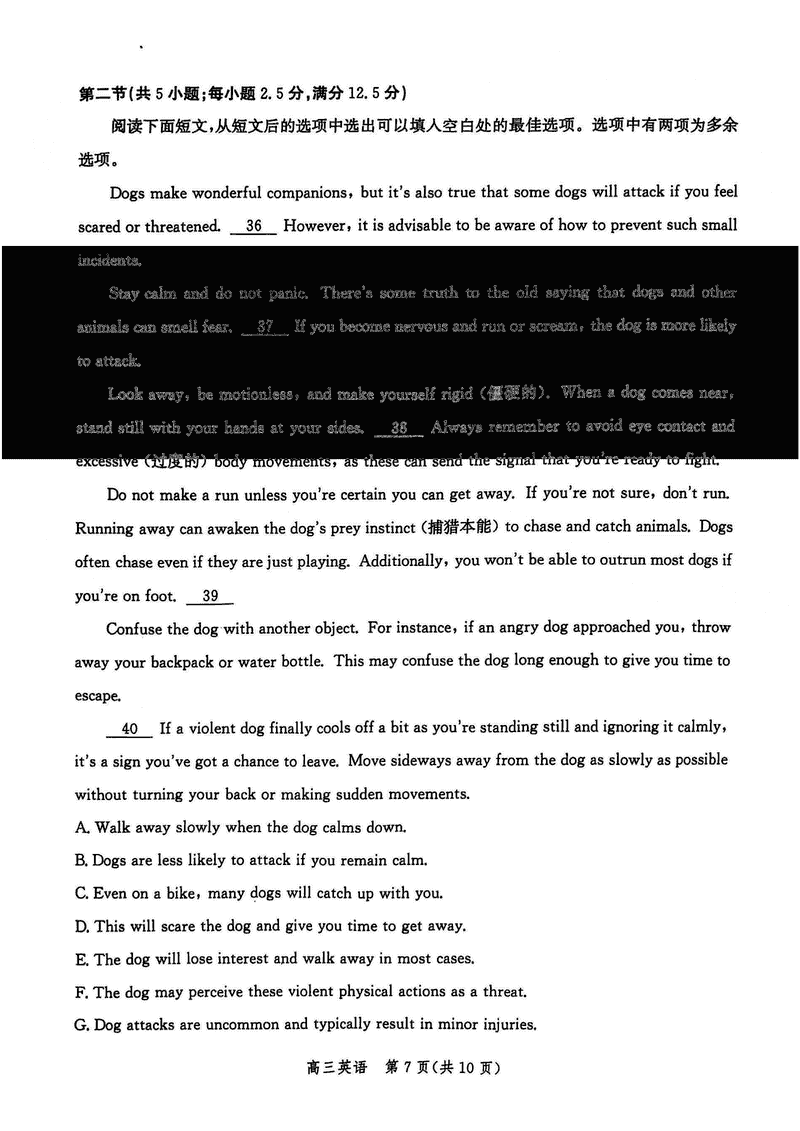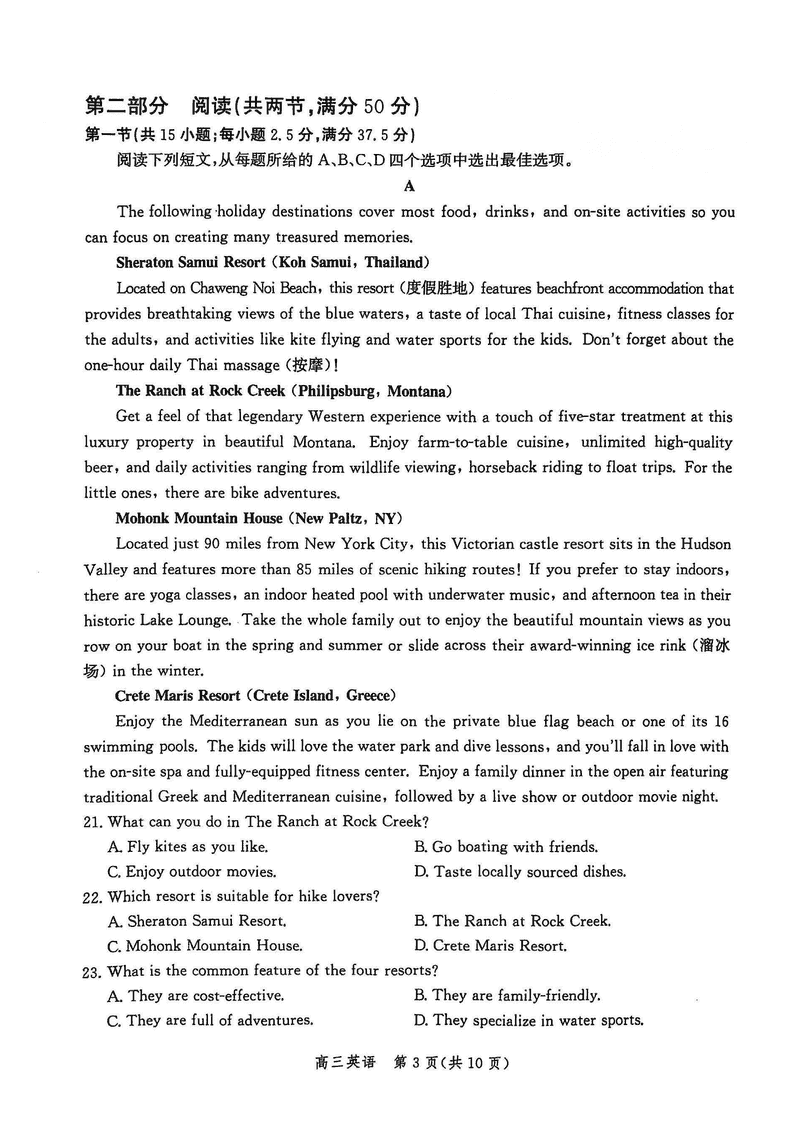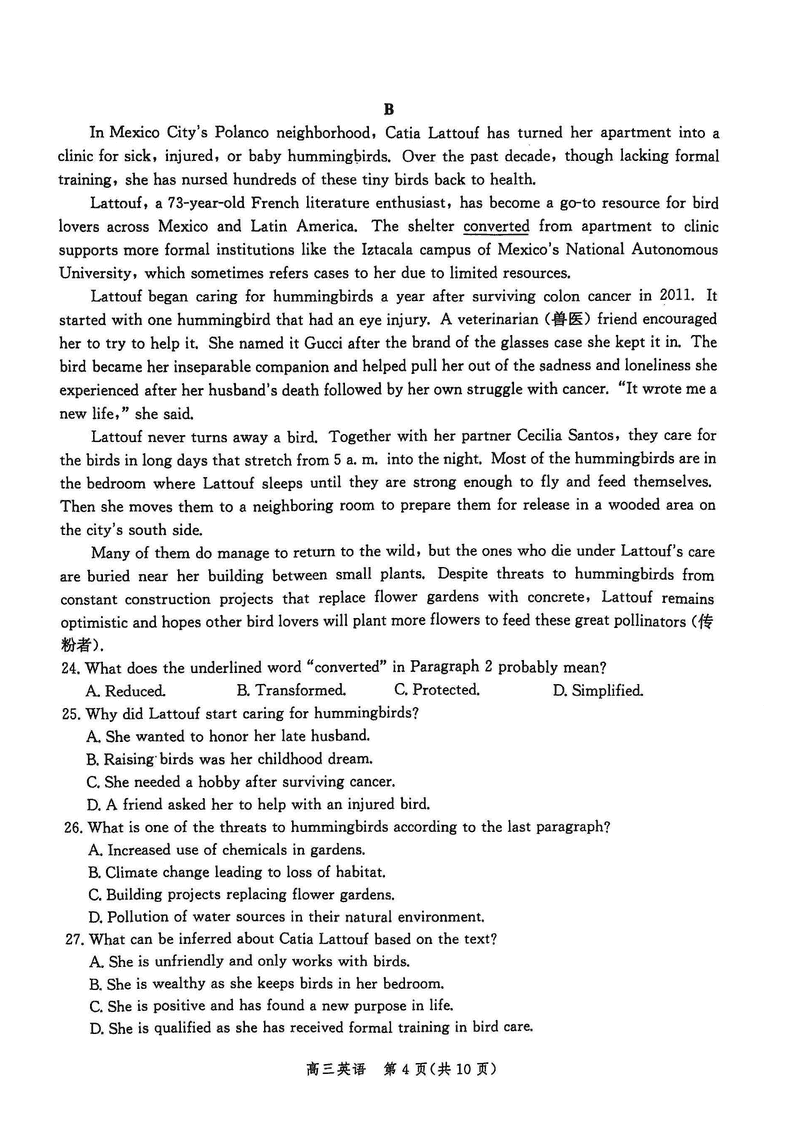 沧州市普通高中2025届高三12月教学质量监测英语试题及答案
