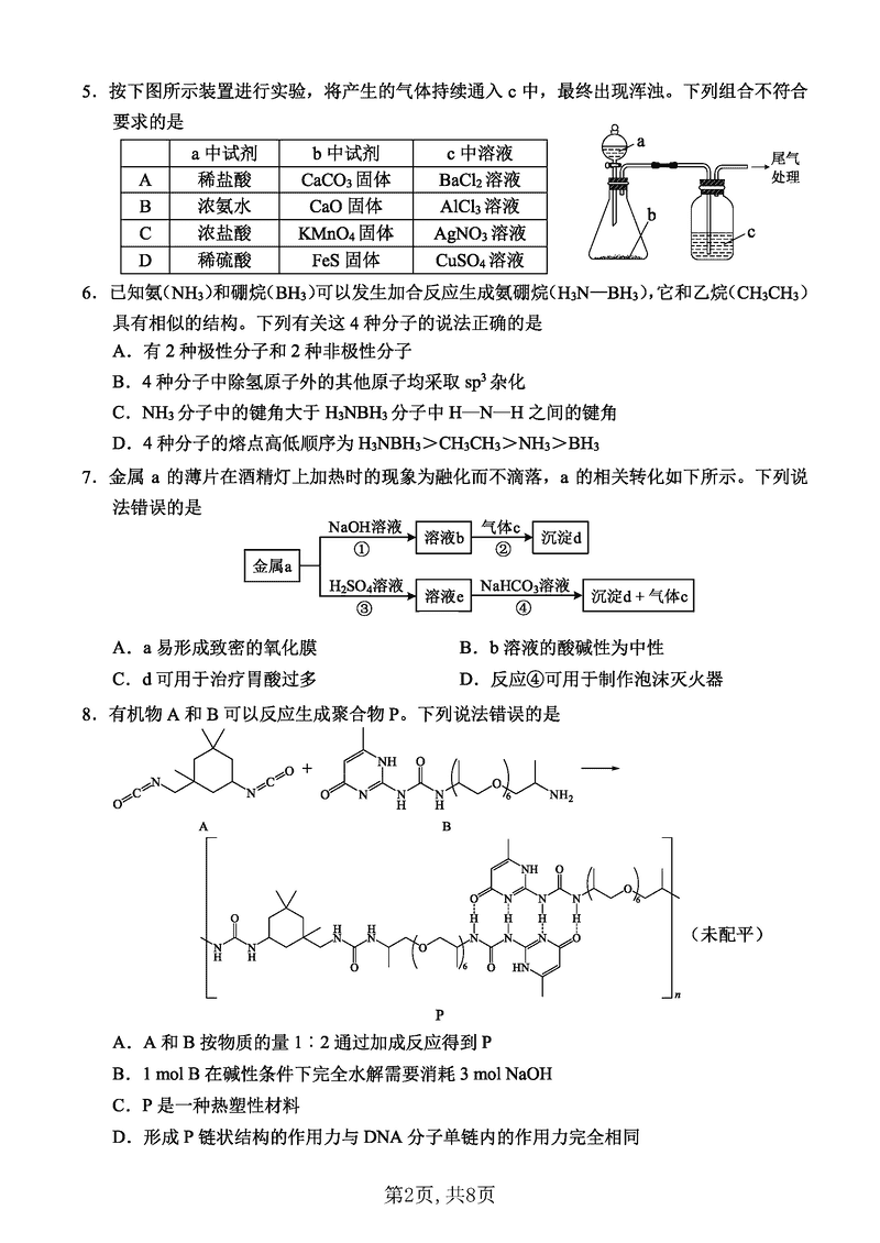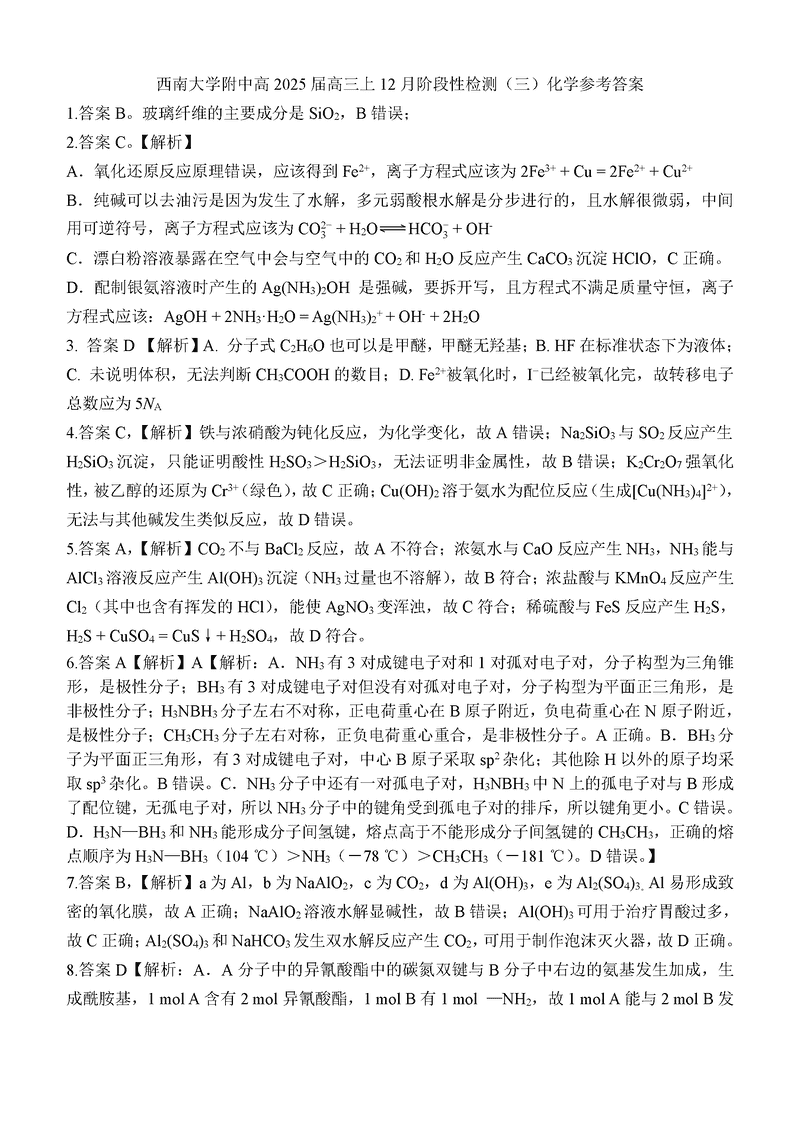 重庆西南大学附中2025届高三12月一诊模拟化学考试已于近日开考,为方便考生考后及时查看考试情况,查漏补缺、弥补不足,本文整理了试题答案解析相关信息!