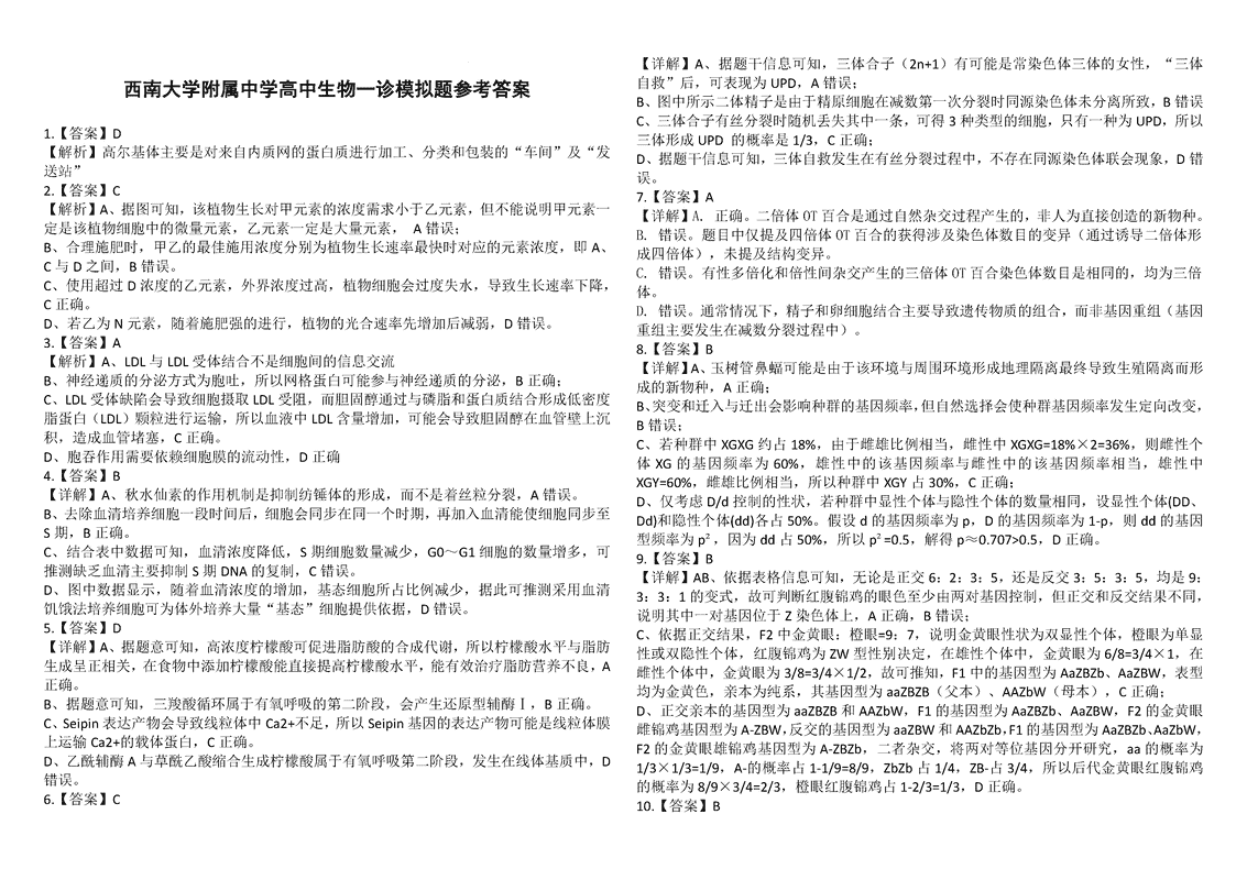 重庆西南大学附中2025届高三12月一诊模拟生物考试已于近日开考,为方便考生考后及时查看考试情况,查漏补缺、弥补不足,本文整理了试题答案解析相关信息!