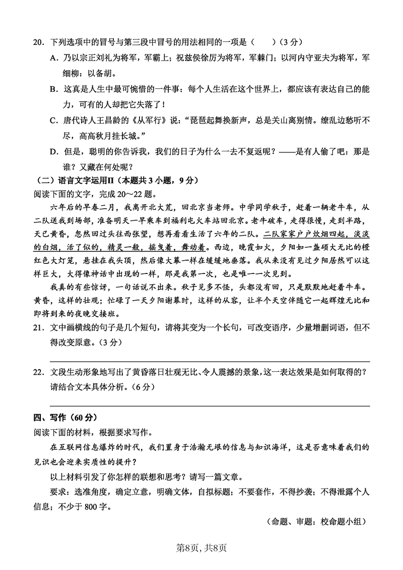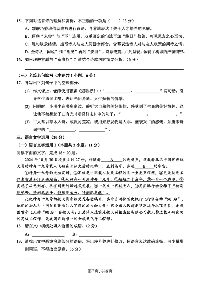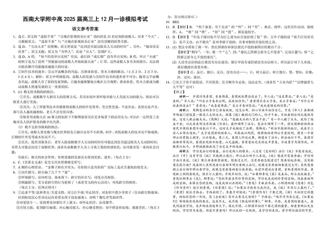 重庆西南大学附中2025届高三12月一诊模拟语文考试已于近日开考,为方便考生考后及时查看考试情况,查漏补缺、弥补不足,本文整理了试题答案解析相关信息!
