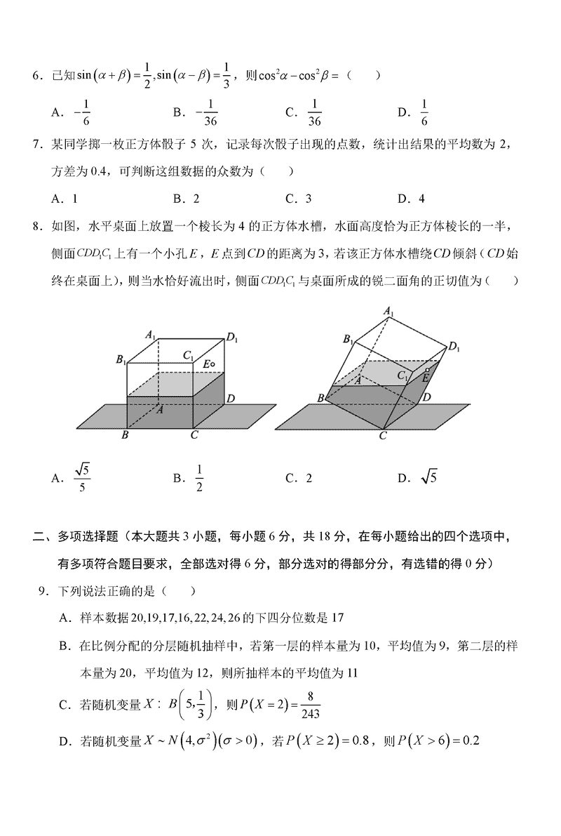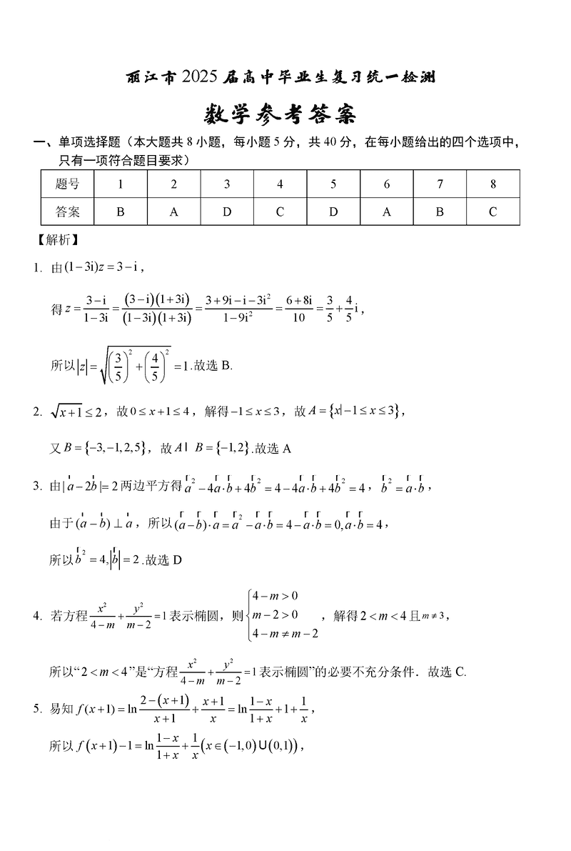 云南丽江2025届高中毕业生复习统一检测数学考试已于近日开考,为方便考生考后及时查看考试情况,查漏补缺、弥补不足,本文整理了试题答案解析相关信息!