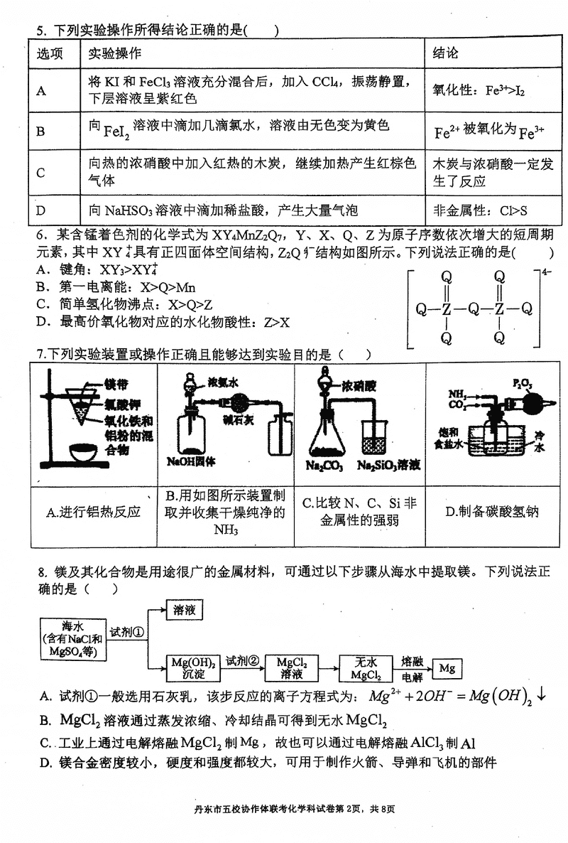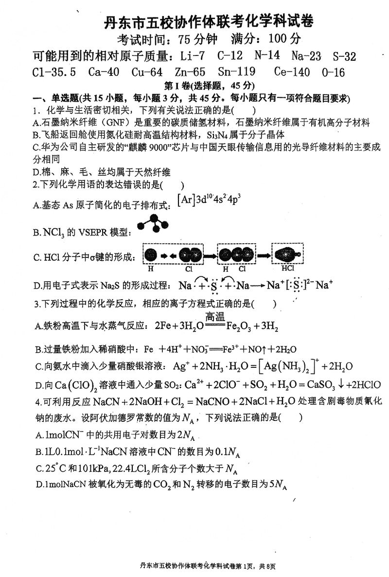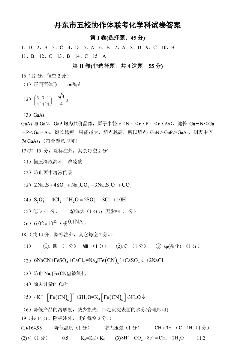丹东五校协作体2025届高三上12月联考化学考试已于近日开考,为方便考生考后及时查看考试情况,查漏补缺、弥补不足,本文整理了试题答案解析相关信息!