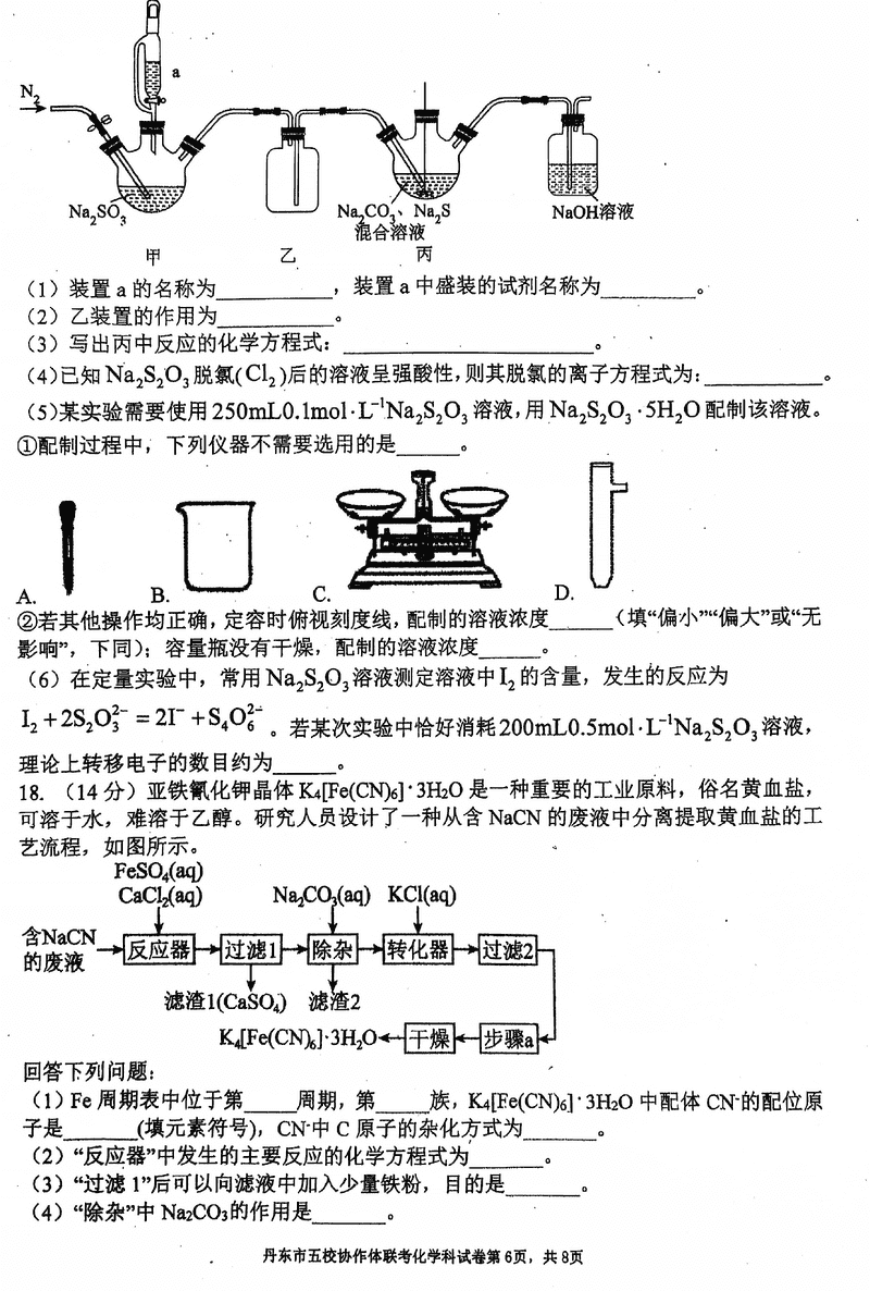 丹东五校协作体2025届高三上12月联考化学试题及答案