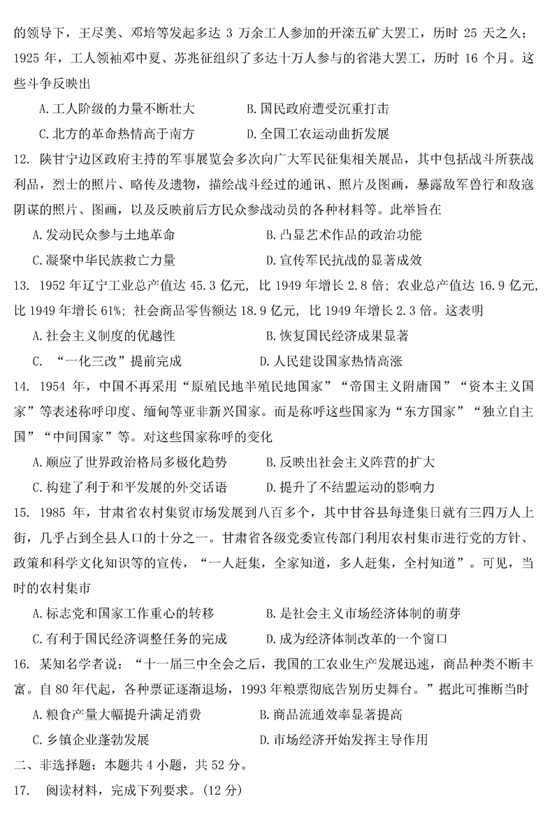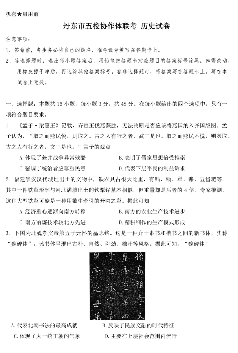 丹东五校协作体2025届高三上12月联考历史试题及答案