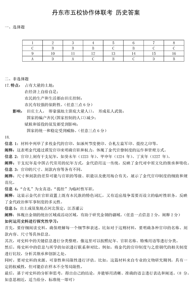 丹东五校协作体2025届高三上12月联考历史考试已于近日开考,为方便考生考后及时查看考试情况,查漏补缺、弥补不足,本文整理了试题答案解析相关信息!