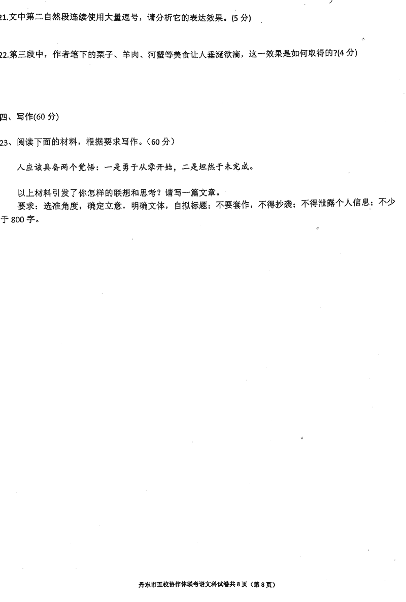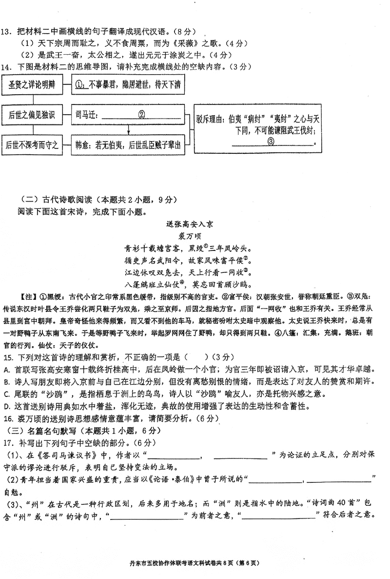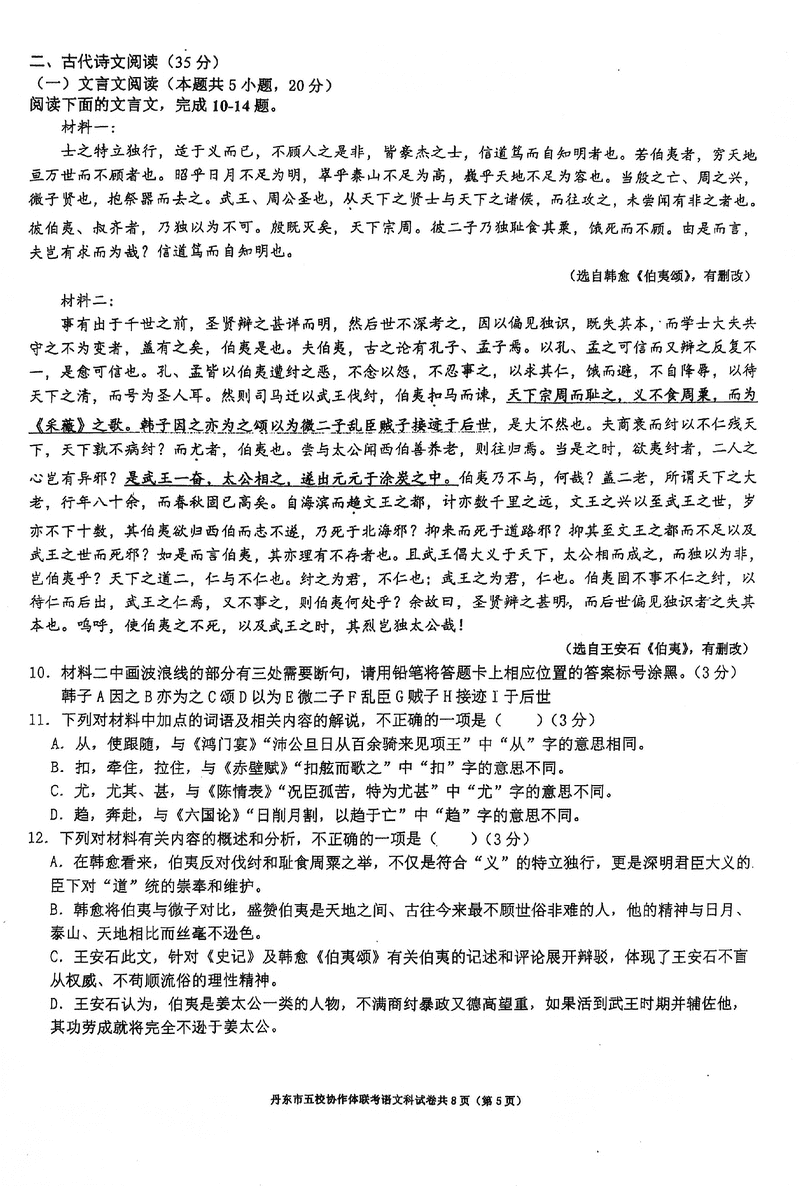 丹东五校协作体2025届高三上12月联考语文试题及答案