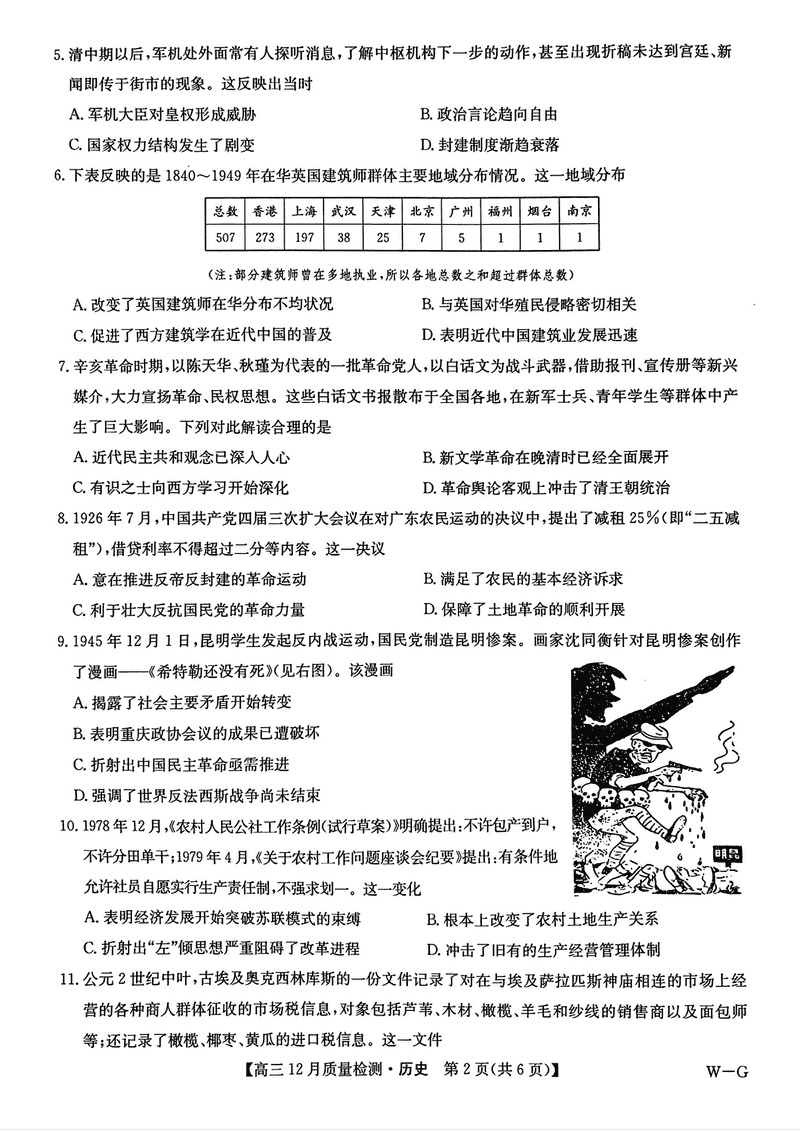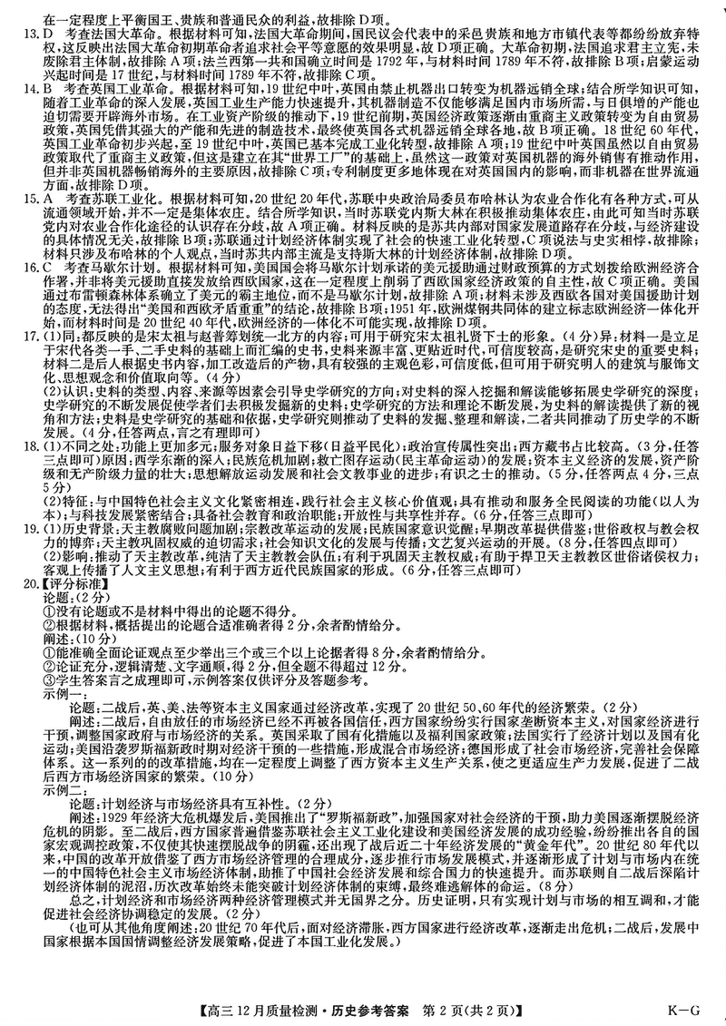 2025届九师联盟高三12月质量检测联考历史试题及答案