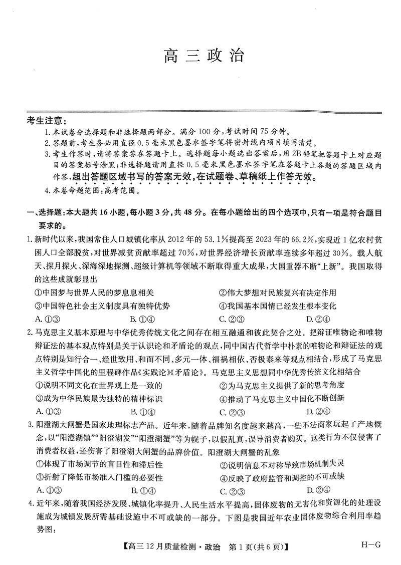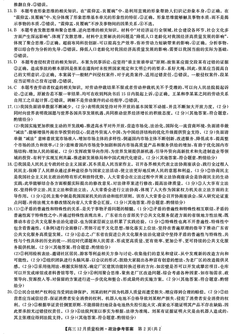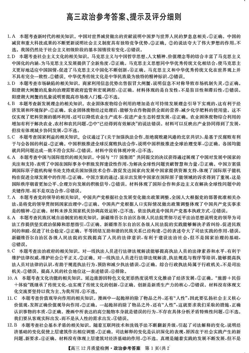2025届九师联盟高三12月质量检测联考政治试题及答案
