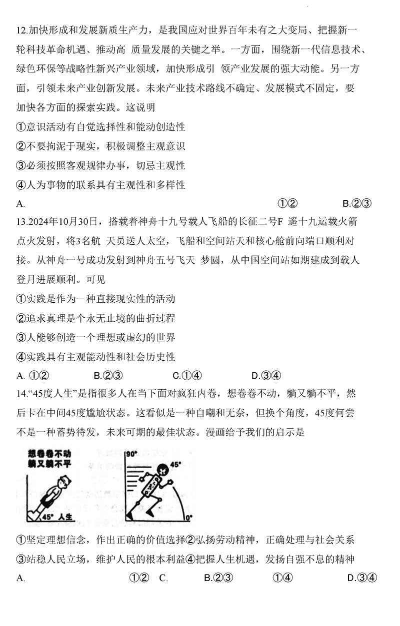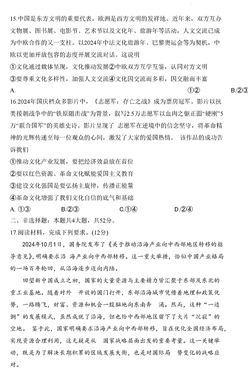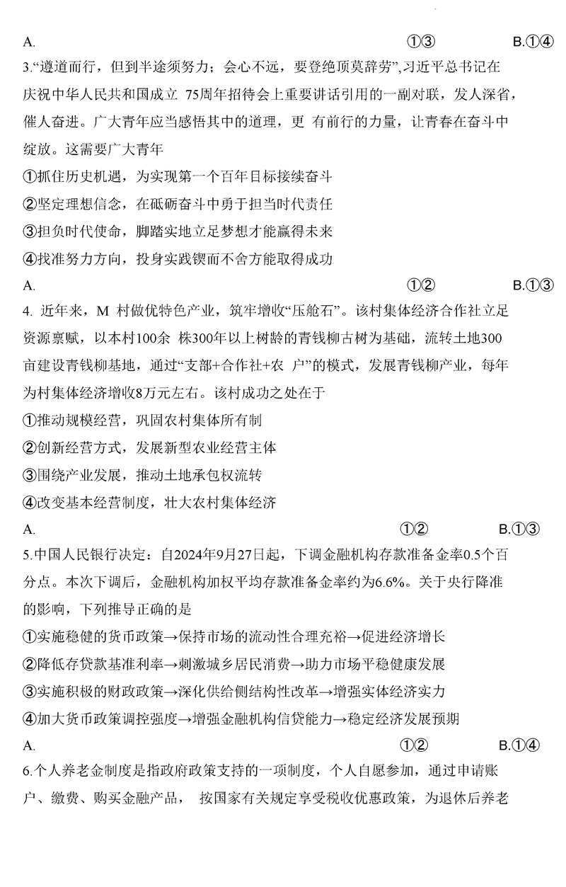 安徽皖江名校2024年高三上学期12月月考政治试题及答案