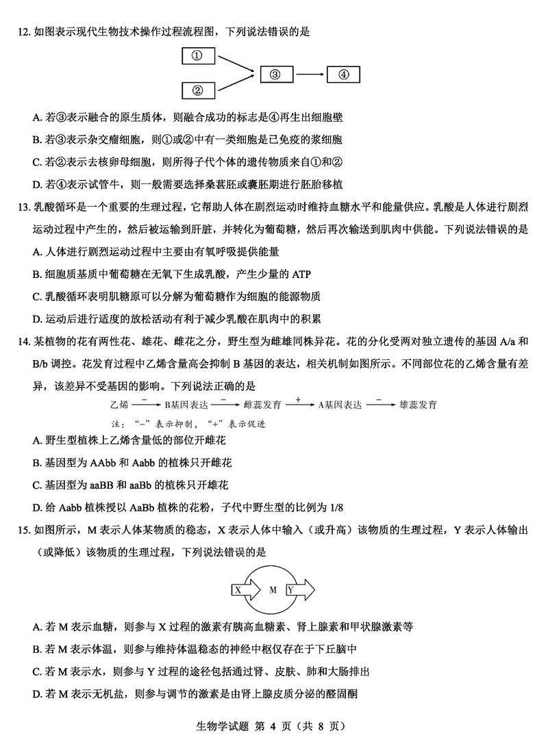 名校教研联盟2025届高三12月联考(西北卷)生物试题及答案