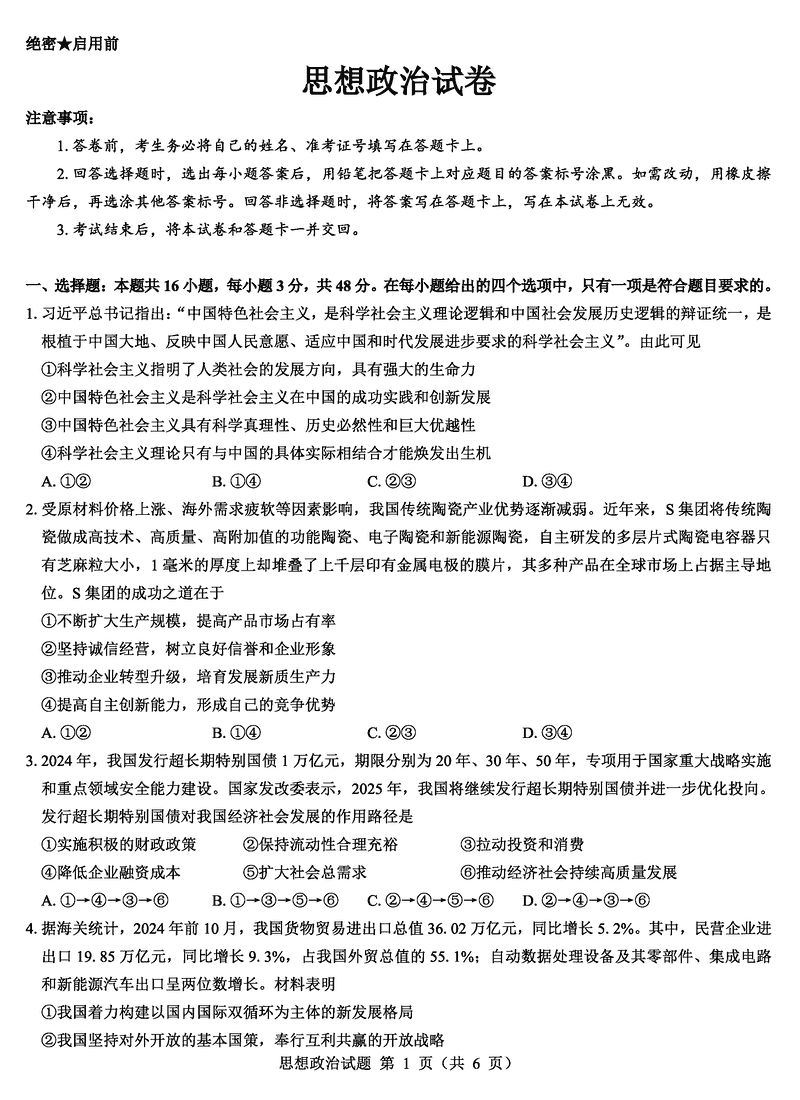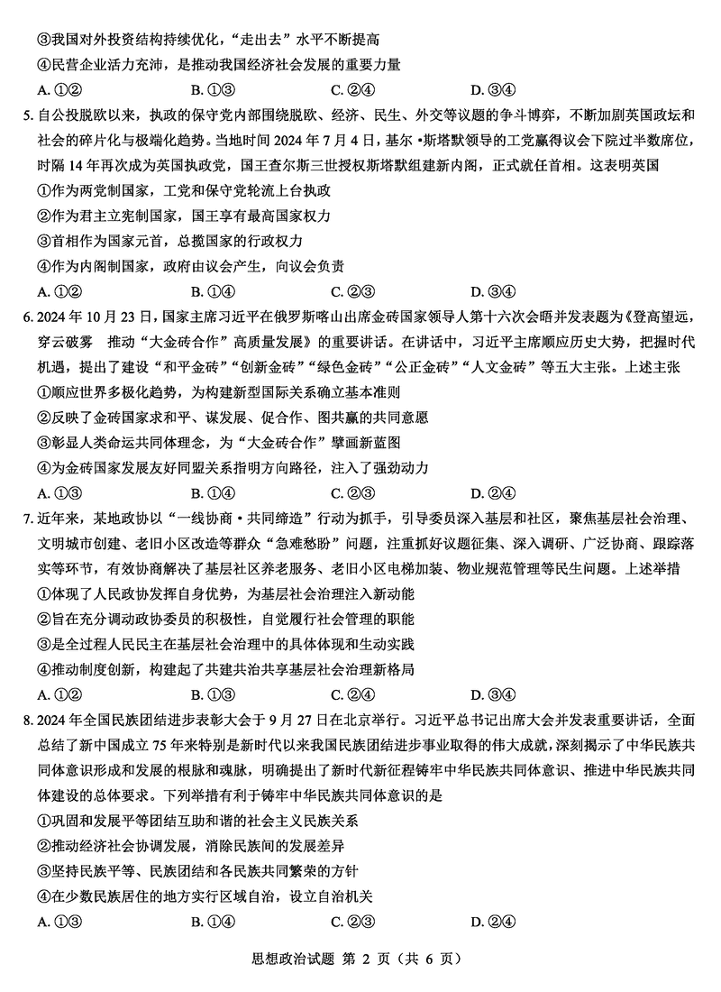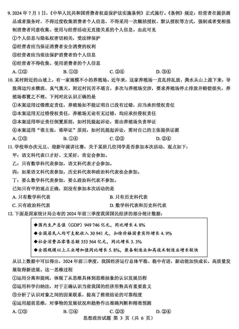 名校教研联盟2025届高三12月联考(西北卷)政治试题及答案