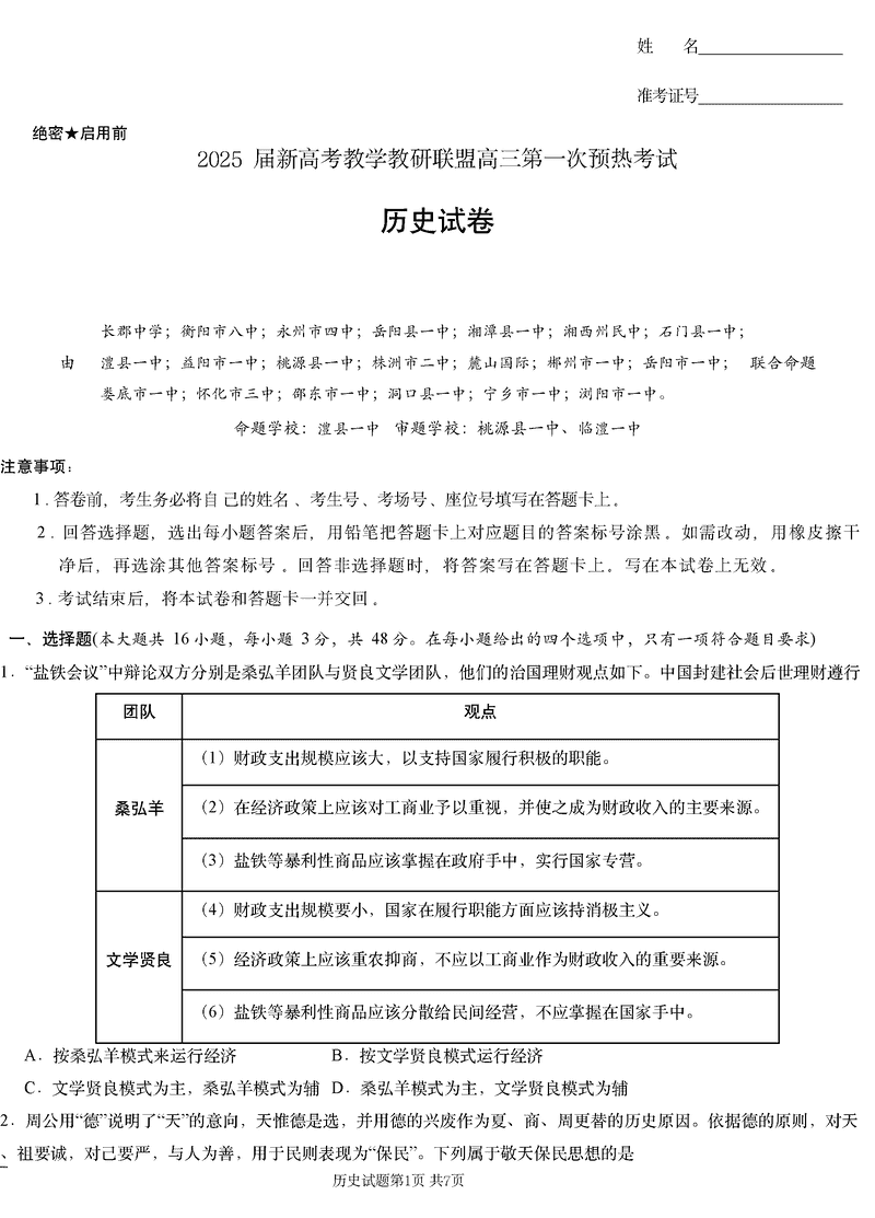 湖南长郡二十校联盟2025届高三上学期第一次预热历史考试已于近日开考,为方便考生考后及时查看考试情况,查漏补缺、弥补不足,本文整理了试题答案解析相关信息!