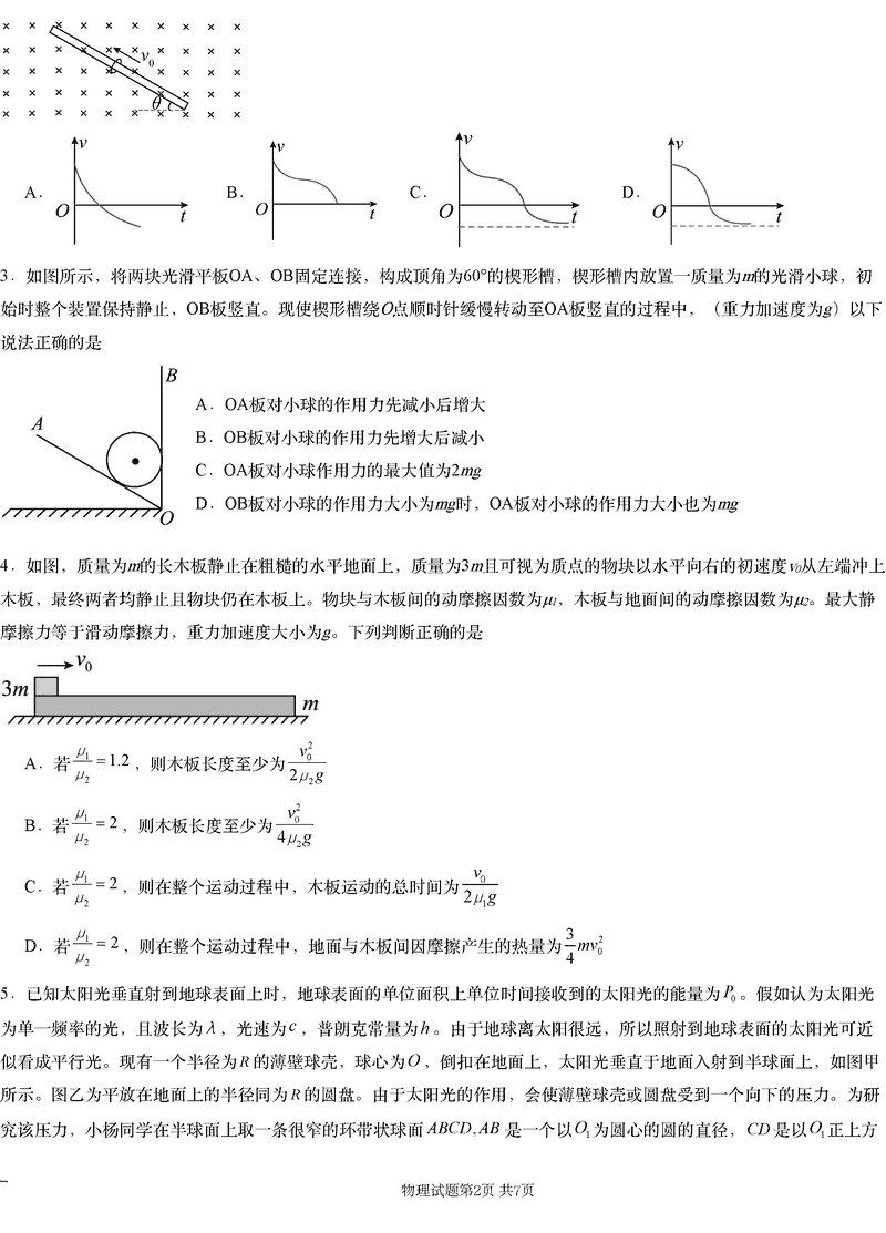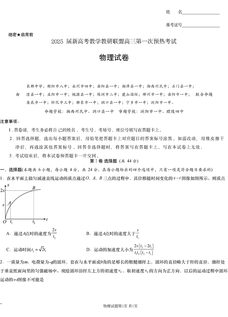 湖南长郡二十校联盟2025届高三上学期第一次预热物理试题及答案