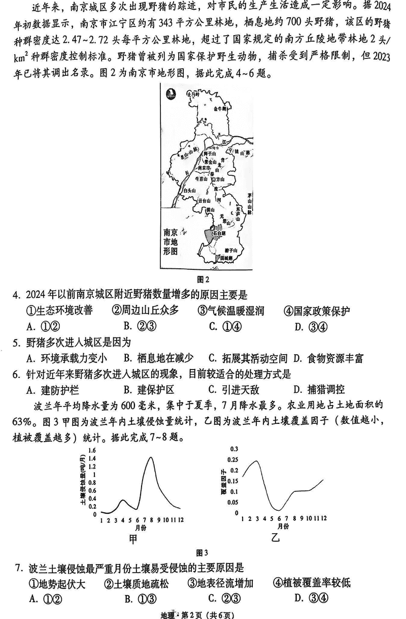云南师大附中2025届高三12月适应性月考卷(七)地理试题及答案