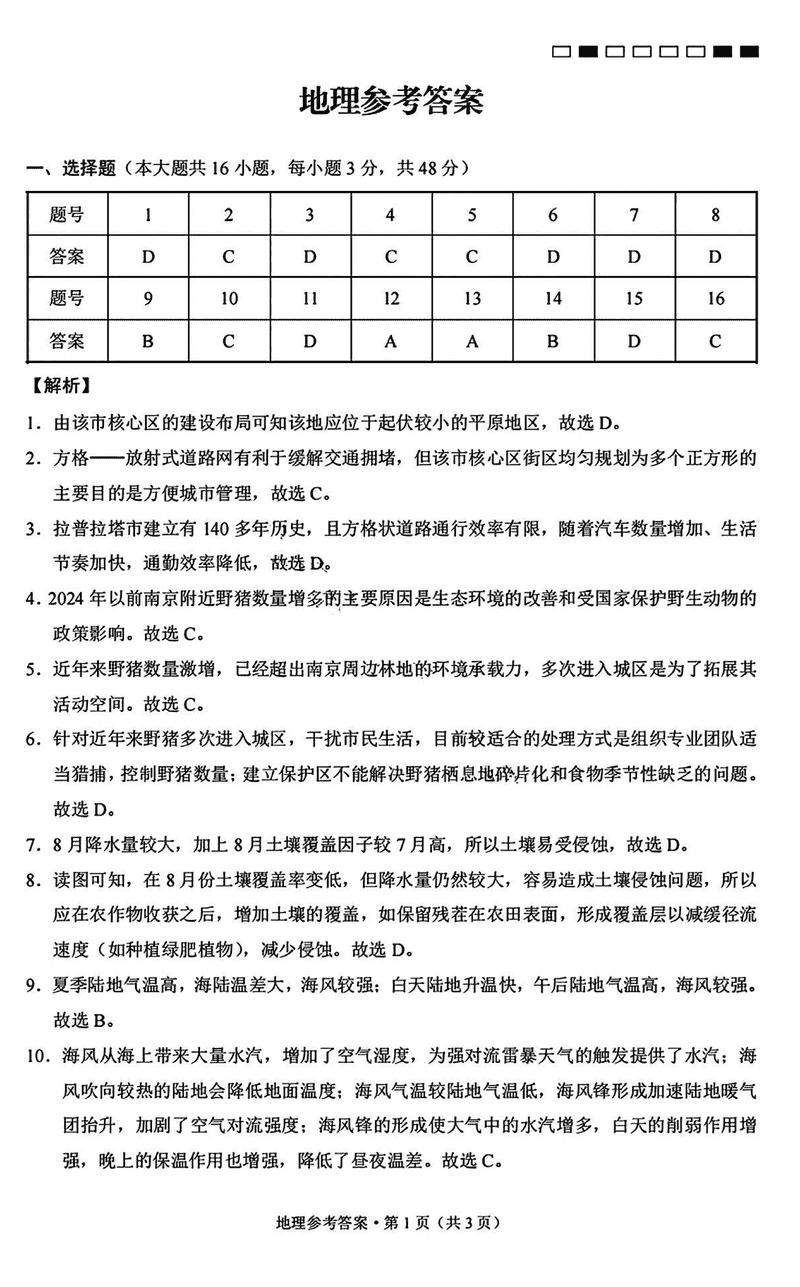 地理试题及答案解析