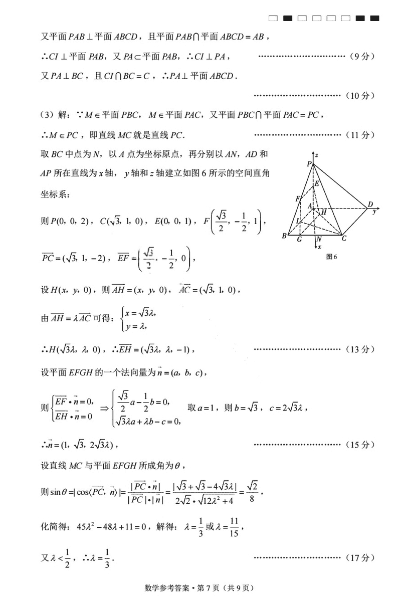 云南师大附中2025届高三12月适应性月考卷(七)数学试题及答案