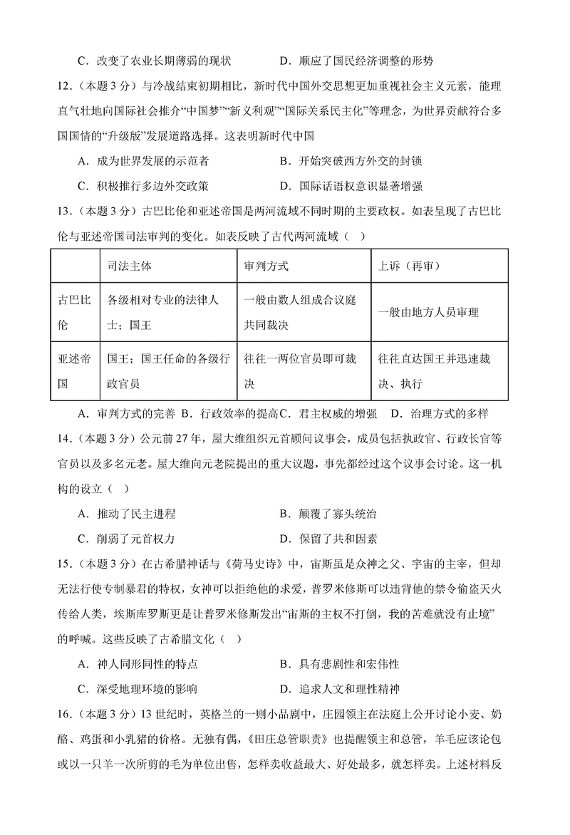 福建师大附中2024-2025学年高三上12月二模历史考试已于近日开考,为方便考生考后及时查看考试情况,查漏补缺、弥补不足,本文整理了试题答案解析相关信息!