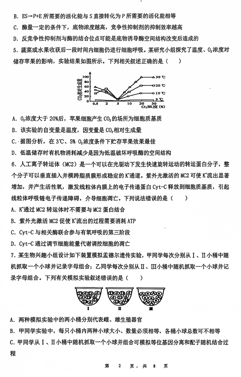 六安二中2025届高三上学期12月第四次月考生物试题及答案