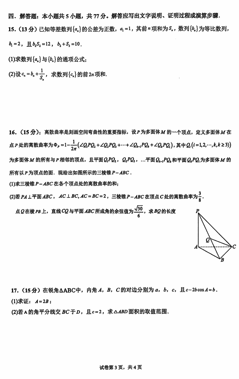 安徽六安二中2025届高三上学期12月第四次月考数学考试已于近日开考,为方便考生考后及时查看考试情况,查漏补缺、弥补不足,本文整理了试题答案解析相关信息!