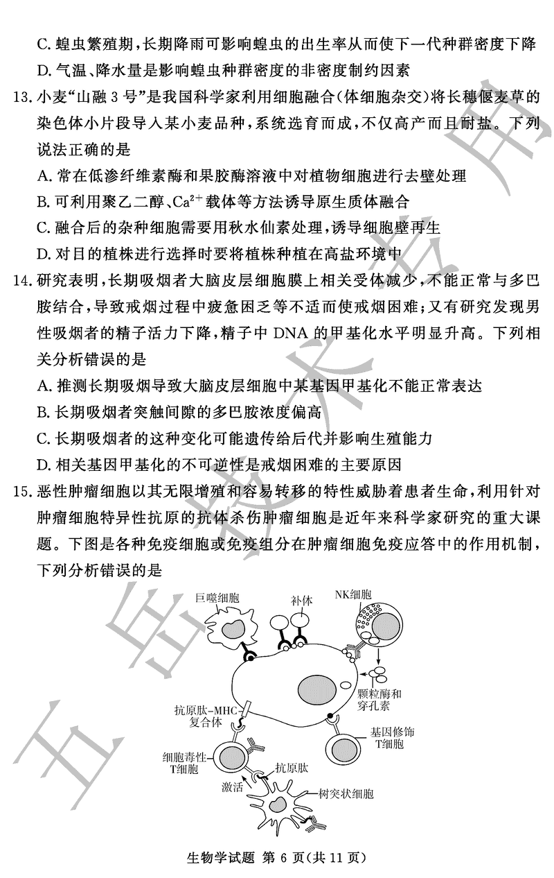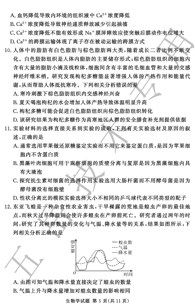 湘豫名校联考2024-2025学年高三上一轮复习质检生物试题及答案