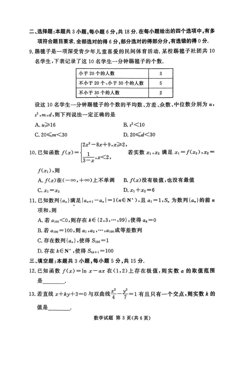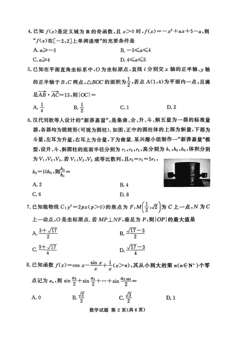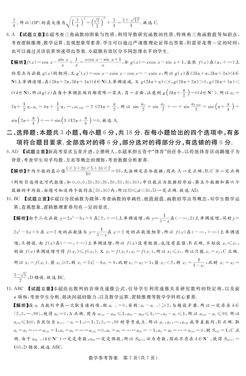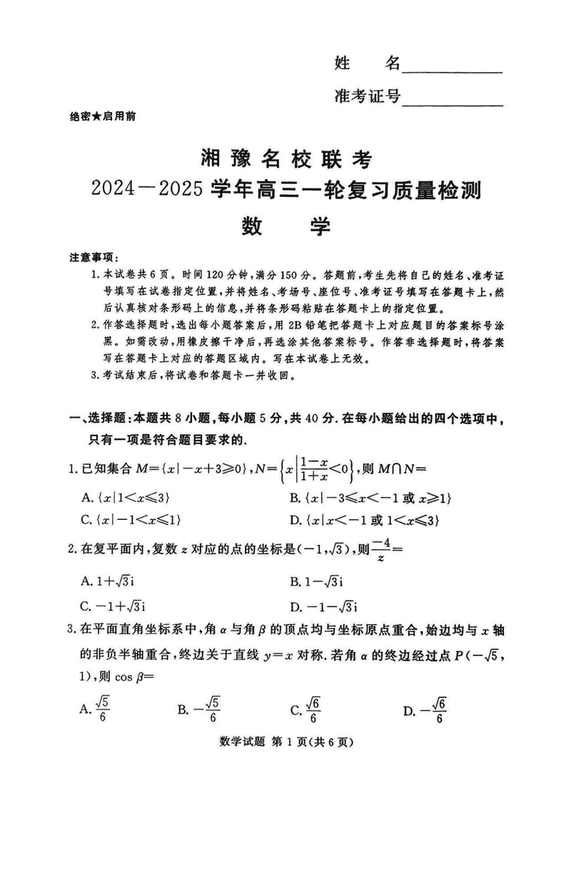 湘豫名校联考2024-2025学年高三上一轮复习质检数学试题及答案