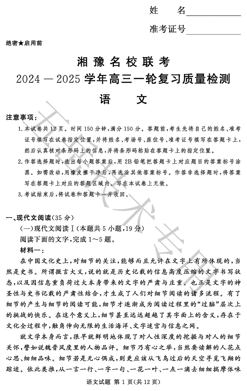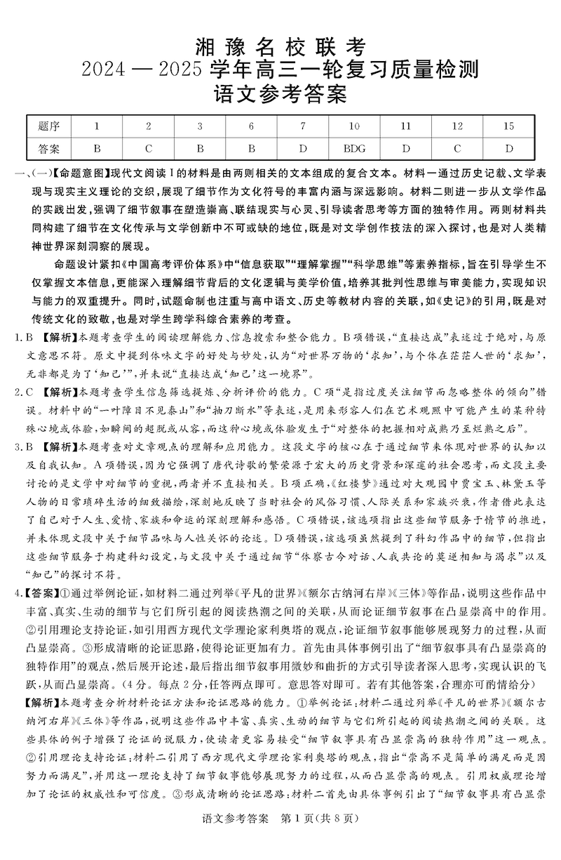 湘豫名校联考2024-2025学年高三上一轮复习质检语文考试已于近日开考,为方便考生考后及时查看考试情况,查漏补缺、弥补不足,本文整理了试题答案解析相关信息!