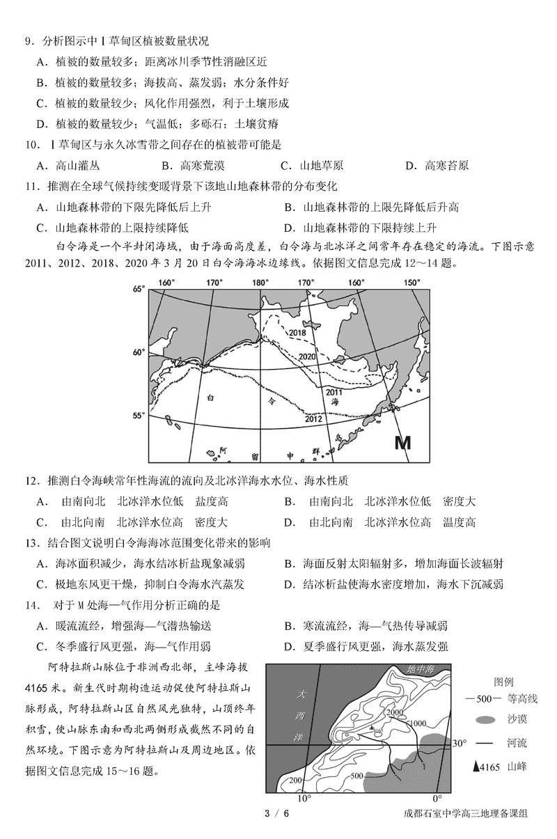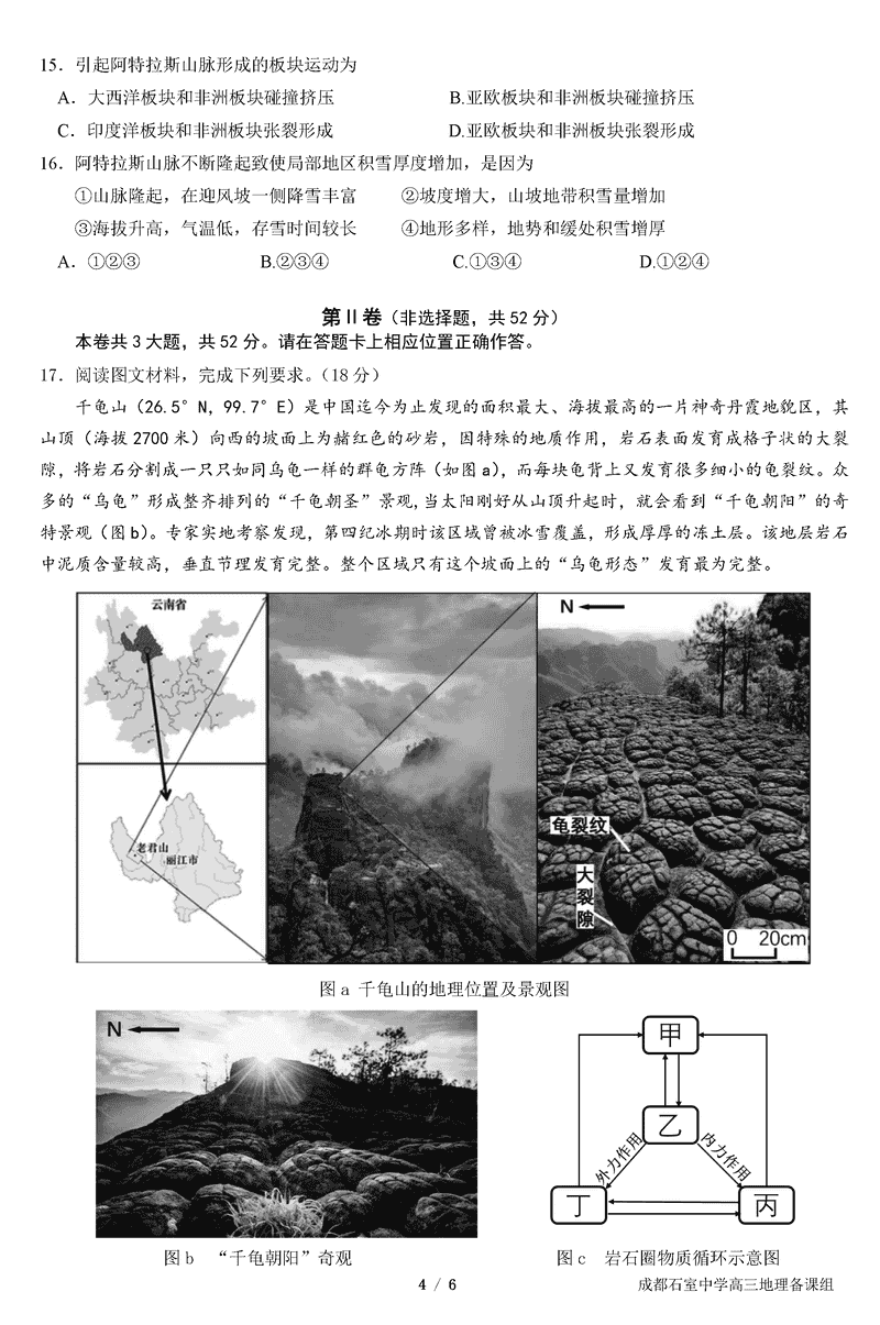 成都石室中学2025年高考适应性测试演练八省联考模拟地理考试已于近日开考,为方便考生考后及时查看考试情况,查漏补缺、弥补不足,本文整理了试题答案解析相关信息!