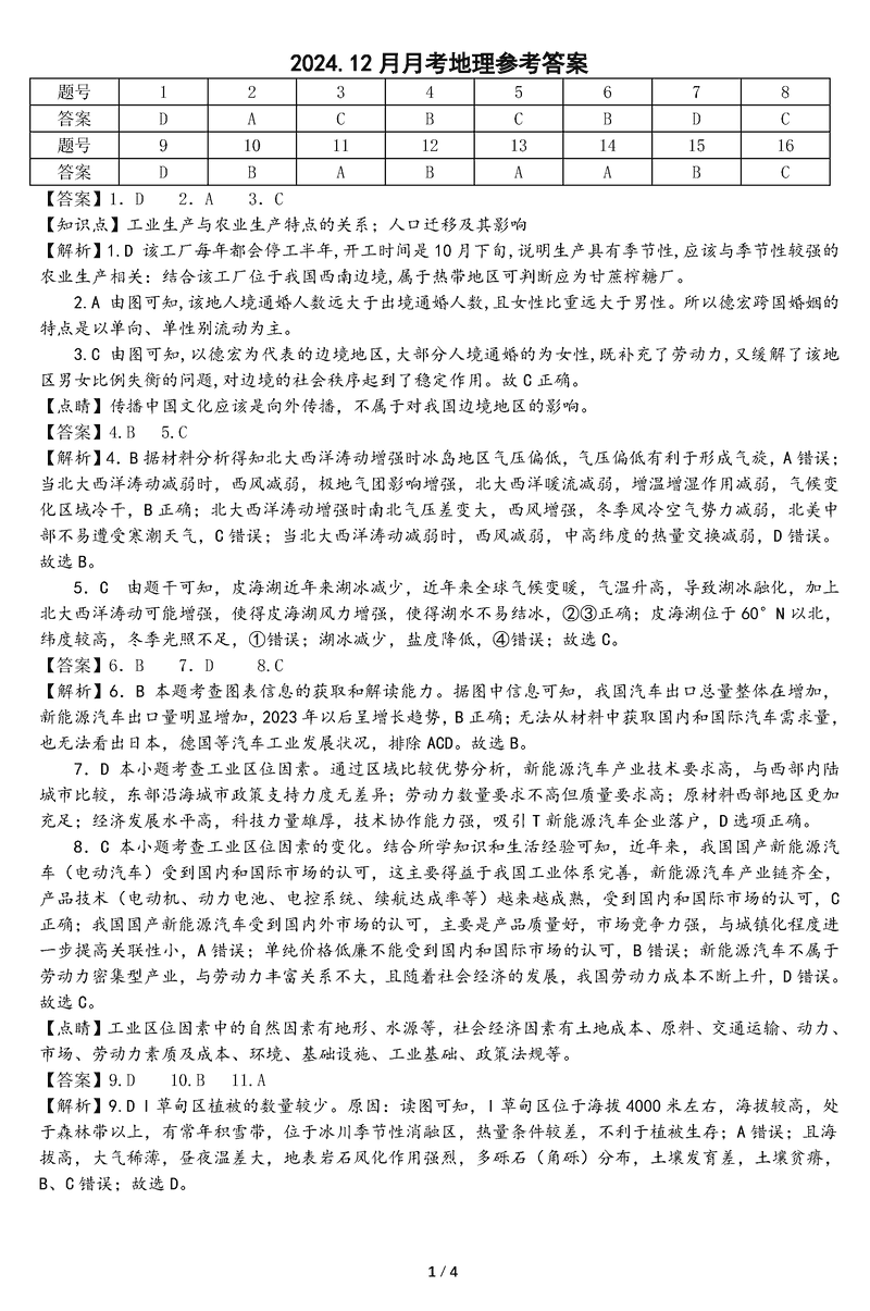 地理试题及答案解析