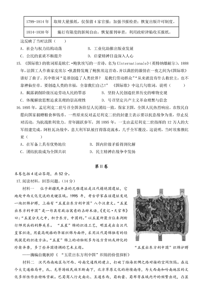 成都石室中学2025年高考适应性测试演练八省联考模拟历史考试已于近日开考,为方便考生考后及时查看考试情况,查漏补缺、弥补不足,本文整理了试题答案解析相关信息!