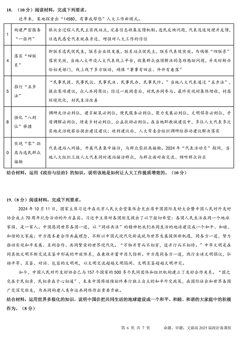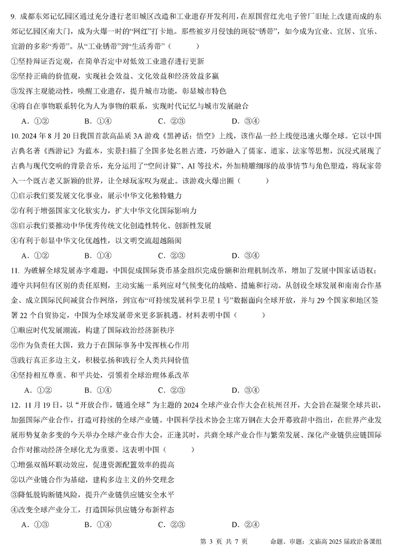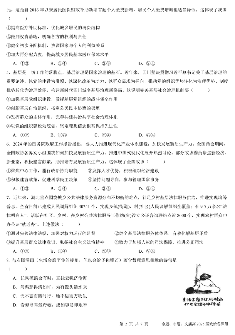 成都石室中学2025年高考适应性测试演练八省联考模拟政治试题及答案