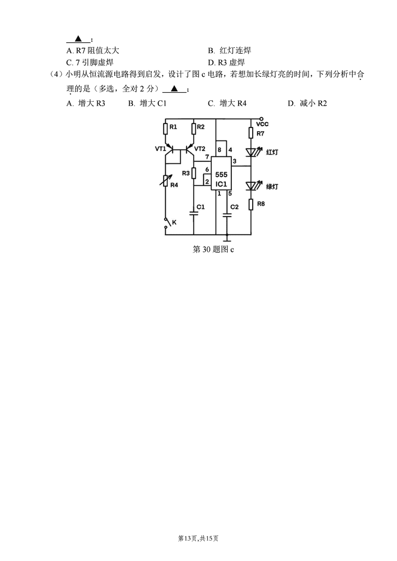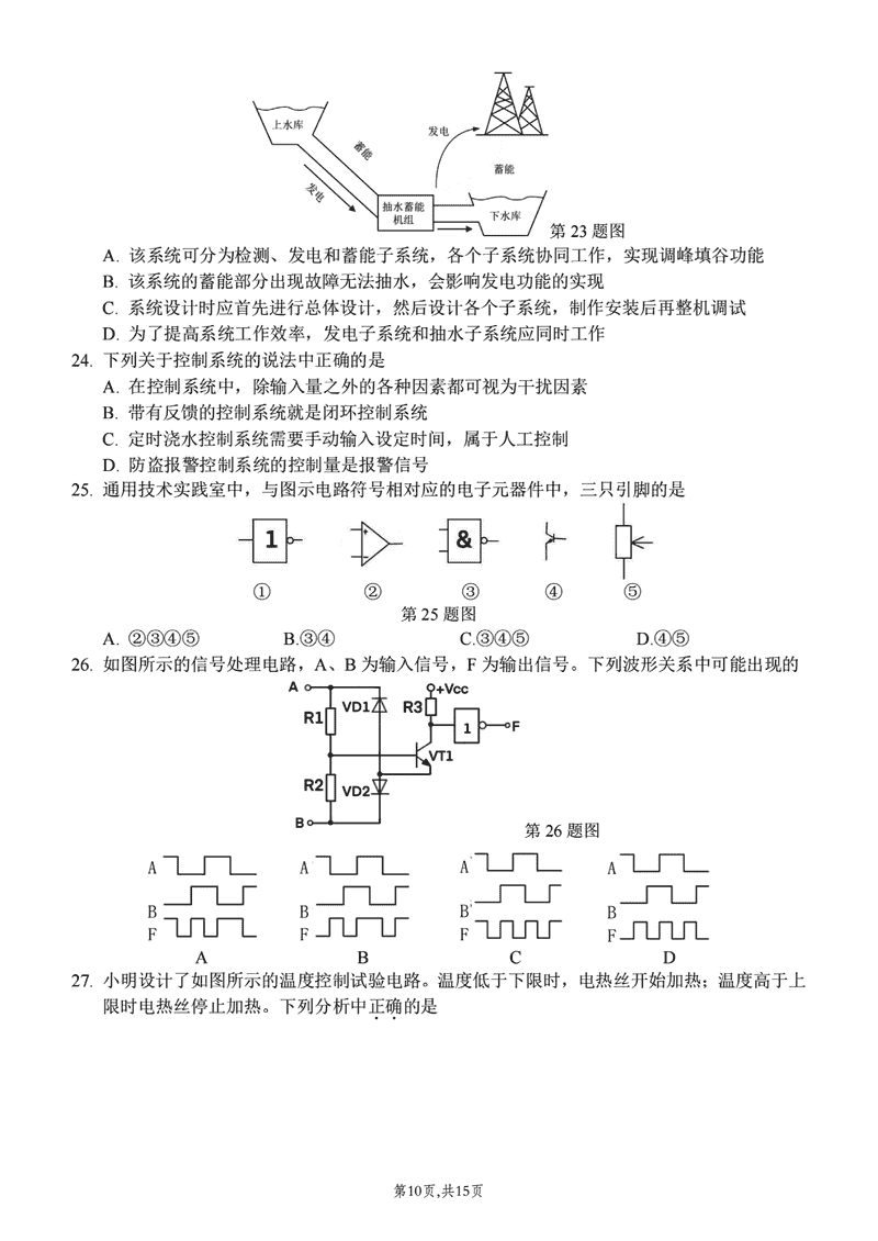 浙江北斗星盟2024年高三上学期12月月考技术试题及答案