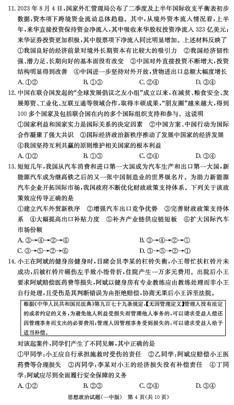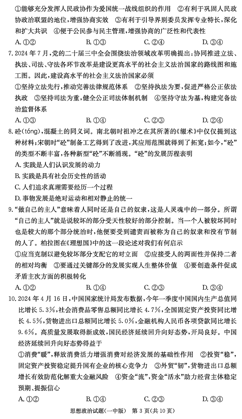 长沙市一中2025届高三月考试卷(四)政治试题及答案 时间:2024-12-30 湖南 文综试题 长沙市一中2025届高三月考试卷(四)政治考试已于近日开考,为方便考生考后及时查看考试情况,查漏补缺、弥补不足,本文整理了试题答案解析相关信息! 汇总:长沙市一中2025届高三月考试卷(四)试题及答案汇总 政治试题及答案解析