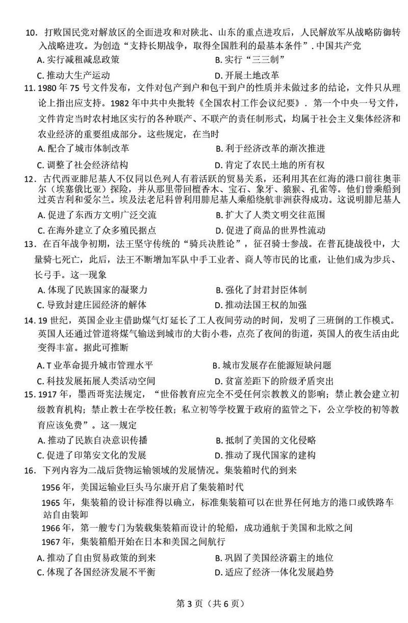 河北承德2025届高三上学期12月联考历史试题及答案 时间:2024-12-30 河北 文综试题 浙江北斗星盟2024年高三上学期12月月考历史考试已于近日开考,为方便考生考后及时查看考试情况,查漏补缺、弥补不足,本文整理了试题答案解析相关信息! 汇总:河北承德2025届高三上学期12月联考试题及答案汇总 历史试题及答案解析